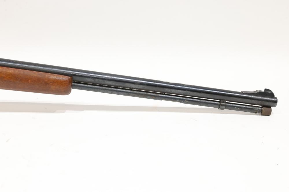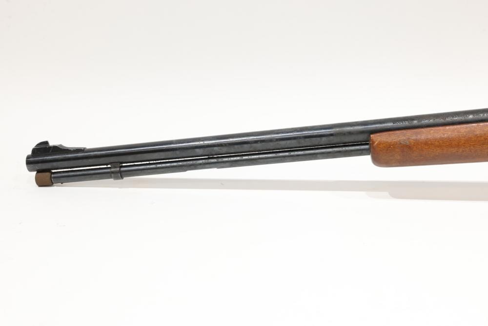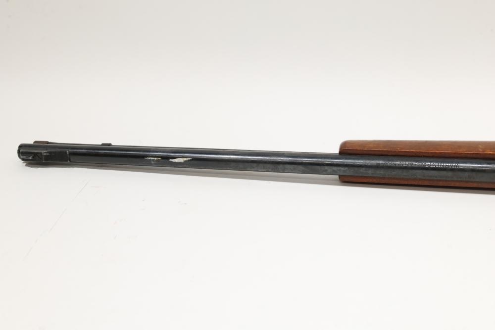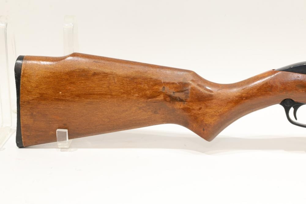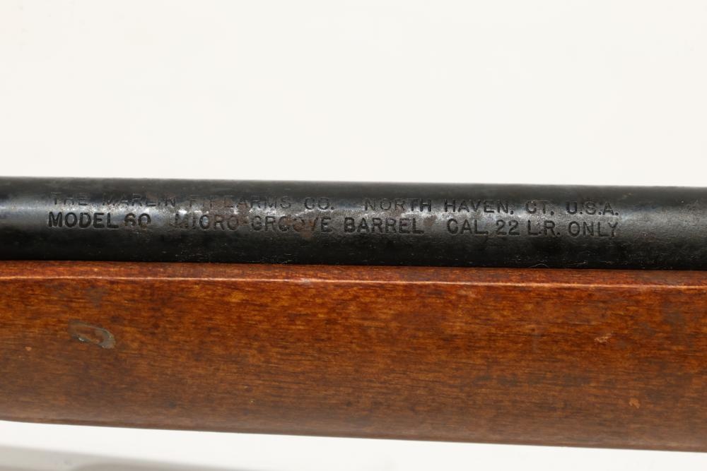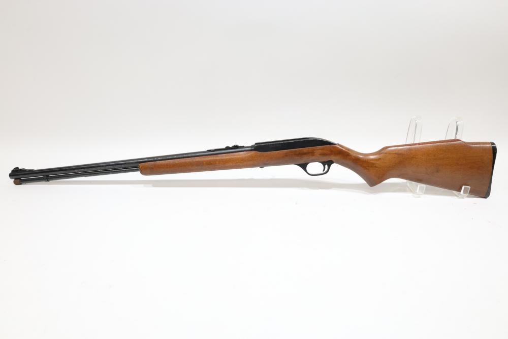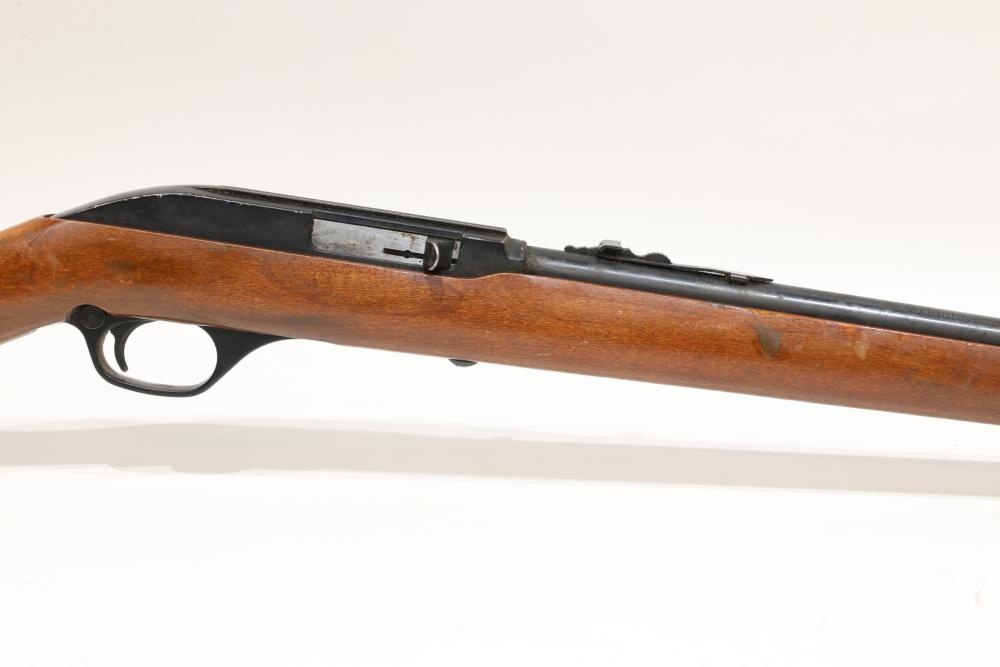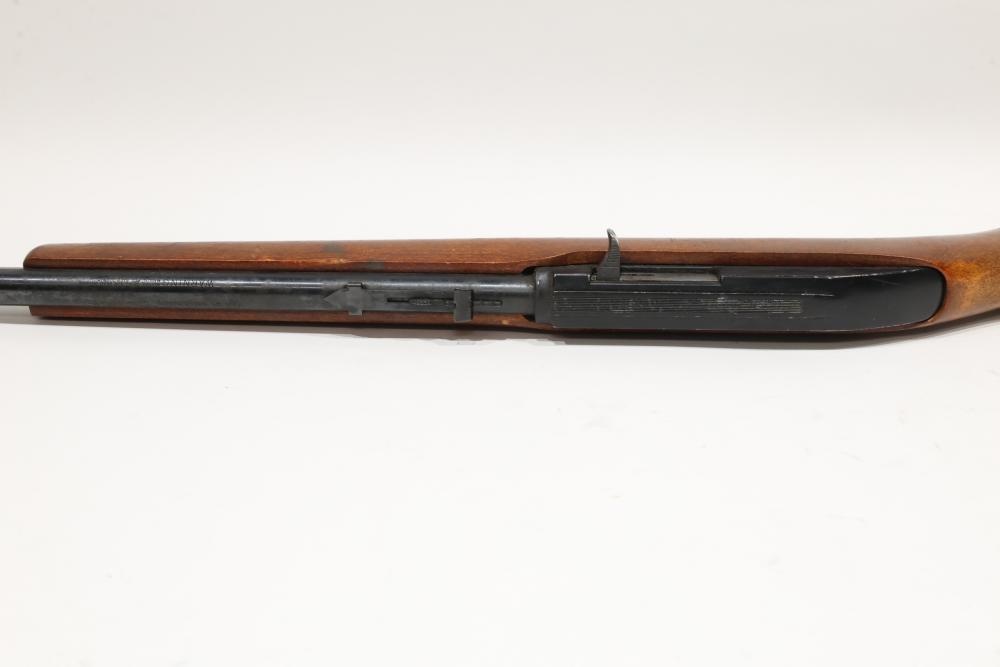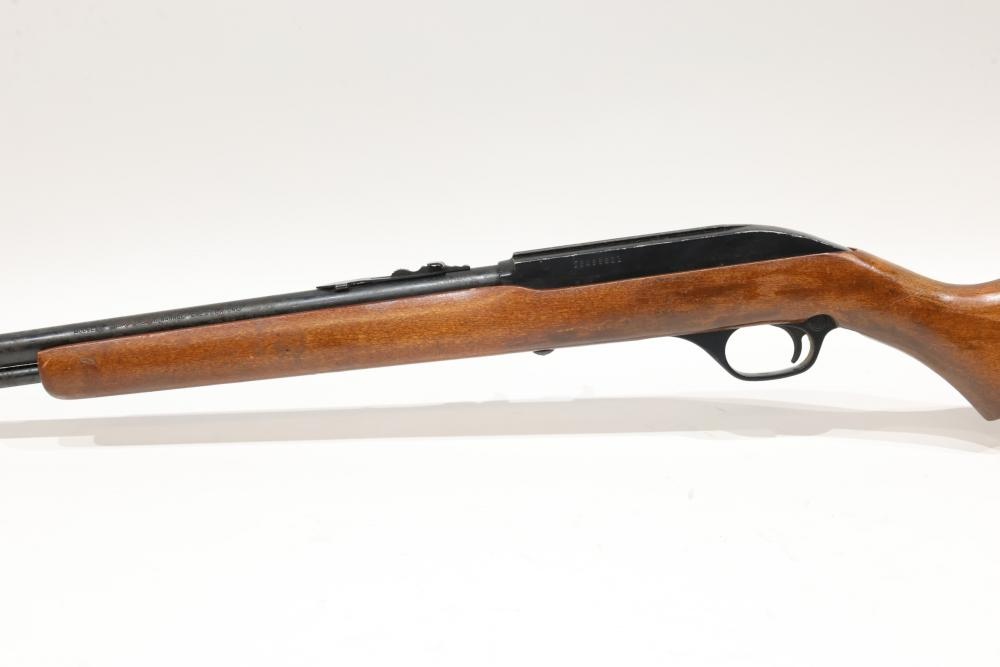 Marlin Model 60 semi-automatic rifle chambered in .22 LR, featuring a wooden stock and blued barrel with Micro-Groove rifling. Serial number 18485621. All lots are subject to all applicable laws at the time of transfer. NOTE: Semi automatic rifles and all handguns require a license in NYS. There is a $35 transfer fee per long gun. There is a $40 transfer fee per hand gun. There is a $20 transfer fee per ammunition lot. If you fail the background check, the transfer fee still applies, and you are still required to make payment and then reconsign the lot to auction. FFL dealers are not exempt from these fees. A background check will be required for all buyers purchasing a firearm and/or ammunition. NYS charges a background check fee for all firearms and ammunition. The fee is $9 for firearms and $2.50 for ammunition. The NYS fee is per background check NOT per lot, will be collected directly by Civil Armory, and is in addition to transfer fees. All lots are subject to all applicable laws at the time of transfer. NOTE: Semi automatic rifles and all handguns require a license in NYS. There is a $35 transfer fee per long gun. There is a $40 transfer fee per hand gun. There is a $20 transfer fee per ammunition lot. If you fail the background check, the transfer fee still applies, and you are still required to make payment and then reconsign the lot to auction. FFL dealers are not exempt from these fees. A background check will be required for all buyers purchasing a firearm and/or ammunition. NYS charges a background check fee for all firearms and ammunition. The fee is $9 for firearms and $2.50 for ammunition. The NYS fee is per background check NOT per lot, will be collected directly by Civil Armory, and is in addition to transfer fees.