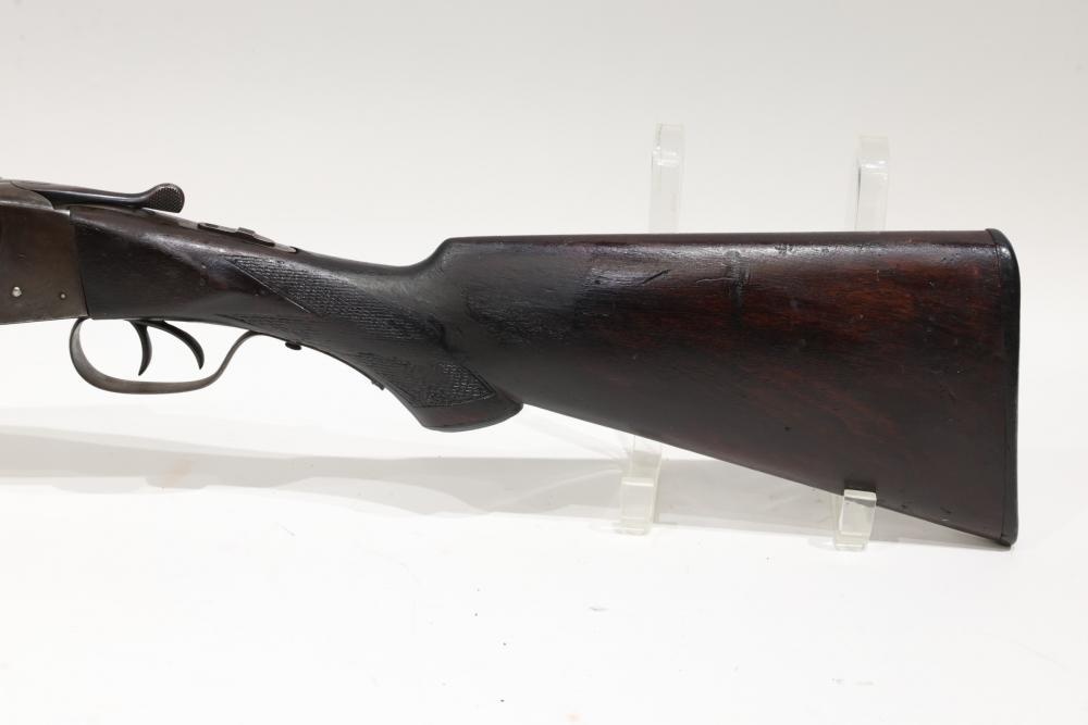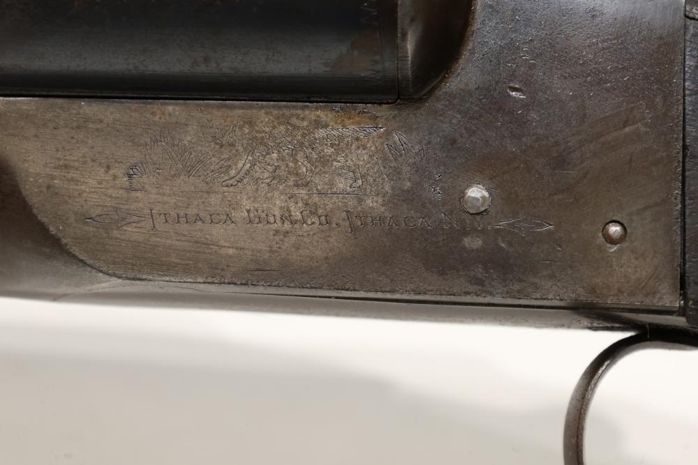 Ithaca Gun Co. double-barrel shotgun chambered in 12 gauge, featuring blued Krupp Fluid Steel barrels and checkered wood stock. Side-by-side configuration with double triggers. Serial number 226943. All lots are subject to all applicable laws at the time of transfer. NOTE: Semi automatic rifles and all handguns require a license in NYS. There is a $35 transfer fee per long gun. There is a $40 transfer fee per hand gun. There is a $20 transfer fee per ammunition lot. If you fail the background check, the transfer fee still applies, and you are still required to make payment and then reconsign the lot to auction. FFL dealers are not exempt from these fees. A background check will be required for all buyers purchasing a firearm and/or ammunition. NYS charges a background check fee for all firearms and ammunition. The fee is $9 for firearms and $2.50 for ammunition. The NYS fee is per background check NOT per lot, will be collected directly by Civil Armory, and is in addition to any transfer All lots are subject to all applicable laws at the time of transfer. NOTE: Semi automatic rifles and all handguns require a license in NYS. There is a $35 transfer fee per long gun. There is a $40 transfer fee per hand gun. There is a $20 transfer fee per ammunition lot. If you fail the background check, the transfer fee still applies, and you are still required to make payment and then reconsign the lot to auction. FFL dealers are not exempt from these fees. A background check will be required for all buyers purchasing a firearm and/or ammunition. NYS charges a background check fee for all firearms and ammunition. The fee is $9 for firearms and $2.50 for ammunition. The NYS fee is per background check NOT per lot, will be collected directly by Civil Armory, and is in addition to any transfer