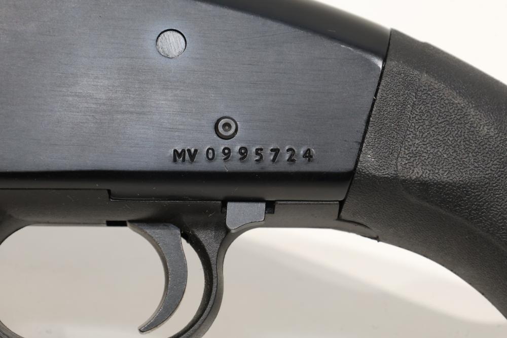 Maverick Arms Model 88 pump-action shotgun chambered in 12 gauge, featuring a black synthetic stock and grooved fore-end. Serial number MV0995724. All lots are subject to all applicable laws at the time of transfer. NOTE: Semi automatic rifles and all handguns require a license in NYS. There is a $35 transfer fee per long gun. There is a $40 transfer fee per hand gun. There is a $20 transfer fee per ammunition lot. If you fail the background check, the transfer fee still applies, and you are still required to make payment and then reconsign the lot to auction. FFL dealers are not exempt from these fees. A background check will be required for all buyers purchasing a firearm and/or ammunition. NYS charges a background check fee for all firearms and ammunition. The fee is $9 for firearms and $2.50 for ammunition. The NYS fee is per background check NOT per lot, will be collected directly by Civil Armory, and is in addition to transfer fees. All lots are subject to all applicable laws at the time of transfer. NOTE: Semi automatic rifles and all handguns require a license in NYS. There is a $35 transfer fee per long gun. There is a $40 transfer fee per hand gun. There is a $20 transfer fee per ammunition lot. If you fail the background check, the transfer fee still applies, and you are still required to make payment and then reconsign the lot to auction. FFL dealers are not exempt from these fees. A background check will be required for all buyers purchasing a firearm and/or ammunition. NYS charges a background check fee for all firearms and ammunition. The fee is $9 for firearms and $2.50 for ammunition. The NYS fee is per background check NOT per lot, will be collected directly by Civil Armory, and is in addition to transfer fees.