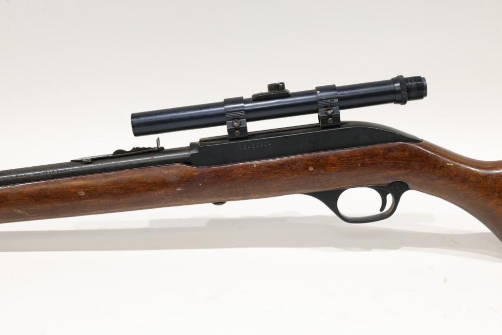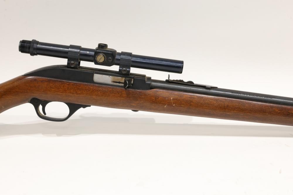 Marlin Model 75C semi-automatic rifle chambered in .22 LR, featuring a scope mount with optic, Micro-Groove barrel, and smooth wood stock. Serial number 13436604. All lots are subject to all applicable laws at the time of transfer. NOTE: Semi automatic rifles and all handguns require a license in NYS. There is a $35 transfer fee per long gun. There is a $40 transfer fee per hand gun. There is a $20 transfer fee per ammunition lot. If you fail the background check, the transfer fee still applies, and you are still required to make payment and then reconsign the lot to auction. FFL dealers are not exempt from these fees. A background check will be required for all buyers purchasing a firearm and/or ammunition. NYS charges a background check fee for all firearms and ammunition. The fee is $9 for firearms and $2.50 for ammunition. The NYS fee is per background check NOT per lot, will be collected directly by Civil Armory, and is in addition to transfer fees. All lots are subject to all applicable laws at the time of transfer. NOTE: Semi automatic rifles and all handguns require a license in NYS. There is a $35 transfer fee per long gun. There is a $40 transfer fee per hand gun. There is a $20 transfer fee per ammunition lot. If you fail the background check, the transfer fee still applies, and you are still required to make payment and then reconsign the lot to auction. FFL dealers are not exempt from these fees. A background check will be required for all buyers purchasing a firearm and/or ammunition. NYS charges a background check fee for all firearms and ammunition. The fee is $9 for firearms and $2.50 for ammunition. The NYS fee is per background check NOT per lot, will be collected directly by Civil Armory, and is in addition to transfer fees.