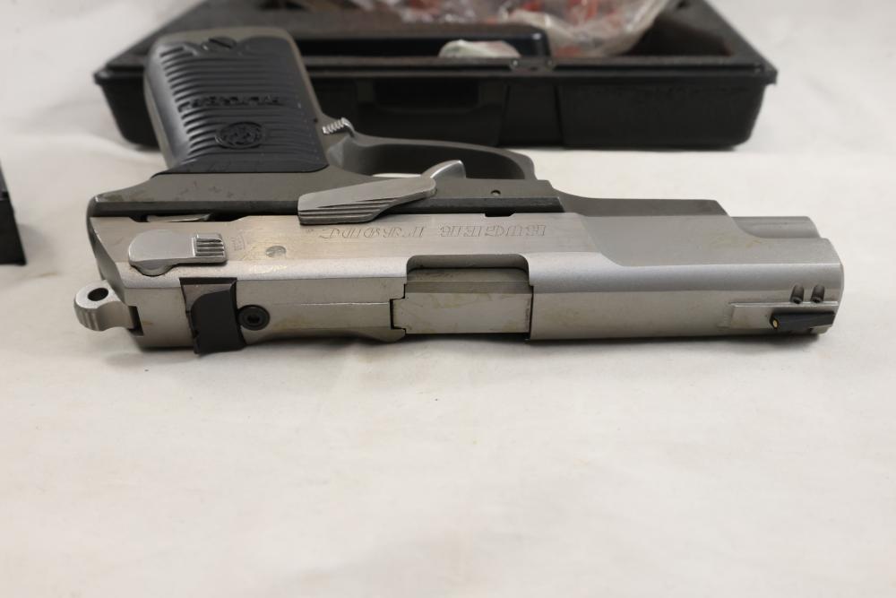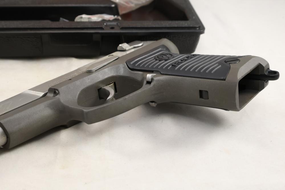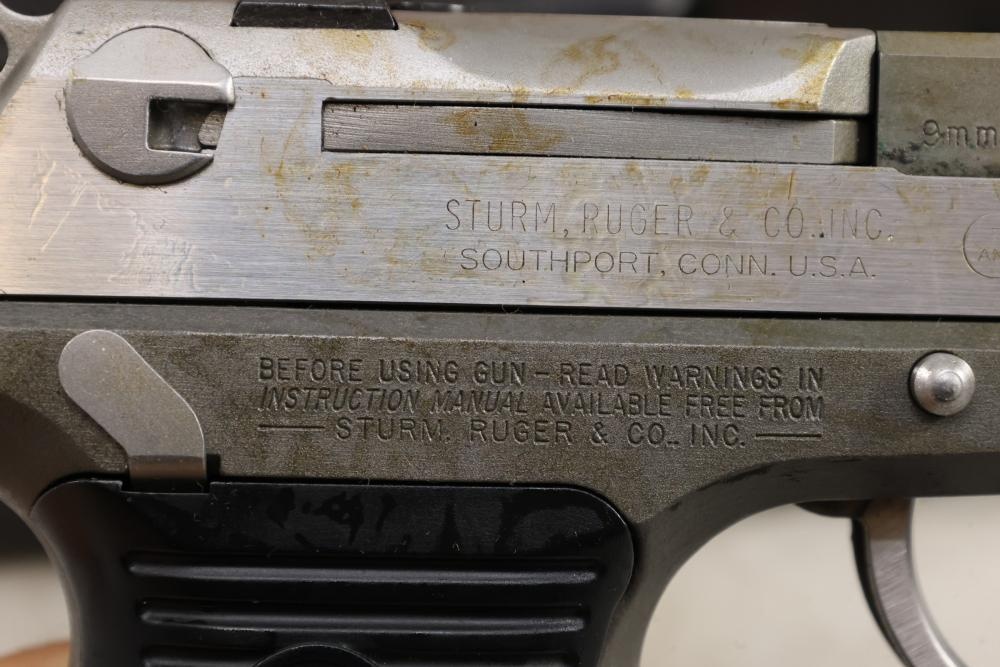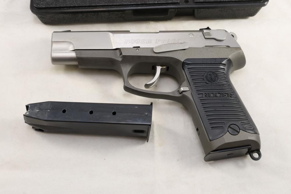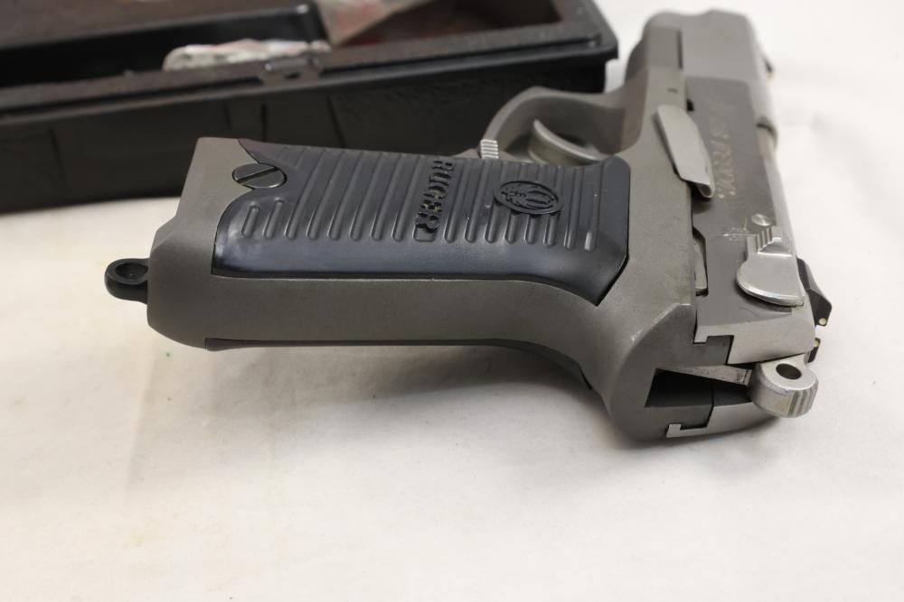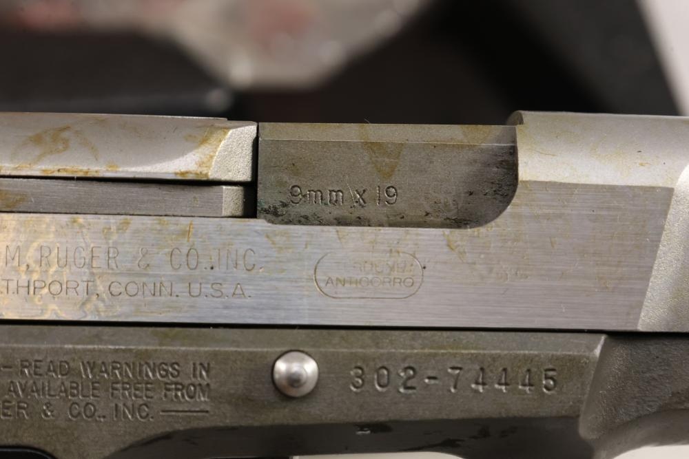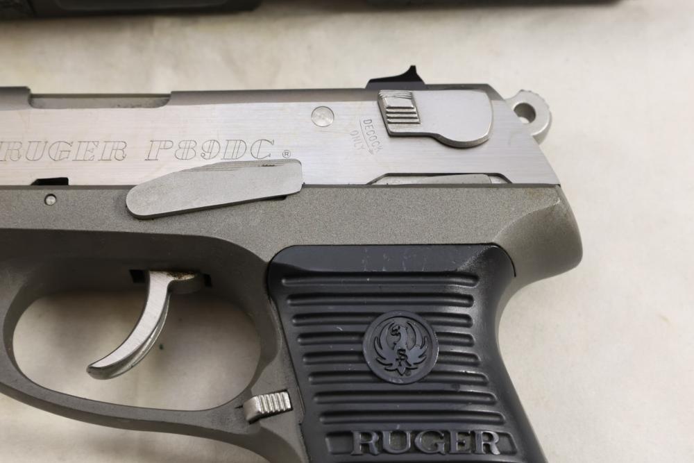 Ruger P89DC semi-automatic pistol chambered in 9mm x 19, with black checkered synthetic grips. Serial Number 302-74445. Accessories include a hard plastic case, paperwork, and one additional magazine. All lots are subject to all applicable laws at the time of transfer. NOTE: Semi automatic rifles and all handguns require a license in NYS. There is a $35 transfer fee per long gun. There is a $40 transfer fee per hand gun. There is a $20 transfer fee per ammunition lot. If you fail the background check, the transfer fee still applies, and you are still required to make payment and then reconsign the lot to auction. FFL dealers are not exempt from these fees. A background check will be required for all buyers purchasing a firearm and/or ammunition. NYS charges a background check fee for all firearms and ammunition. The fee is $9 for firearms and $2.50 for ammunition. The NYS fee is per background check NOT per lot, will be collected directly by Civil Armory, and is in addition to transfer fees. All lots are subject to all applicable laws at the time of transfer. NOTE: Semi automatic rifles and all handguns require a license in NYS. There is a $35 transfer fee per long gun. There is a $40 transfer fee per hand gun. There is a $20 transfer fee per ammunition lot. If you fail the background check, the transfer fee still applies, and you are still required to make payment and then reconsign the lot to auction. FFL dealers are not exempt from these fees. A background check will be required for all buyers purchasing a firearm and/or ammunition. NYS charges a background check fee for all firearms and ammunition. The fee is $9 for firearms and $2.50 for ammunition. The NYS fee is per background check NOT per lot, will be collected directly by Civil Armory, and is in addition to transfer fees.