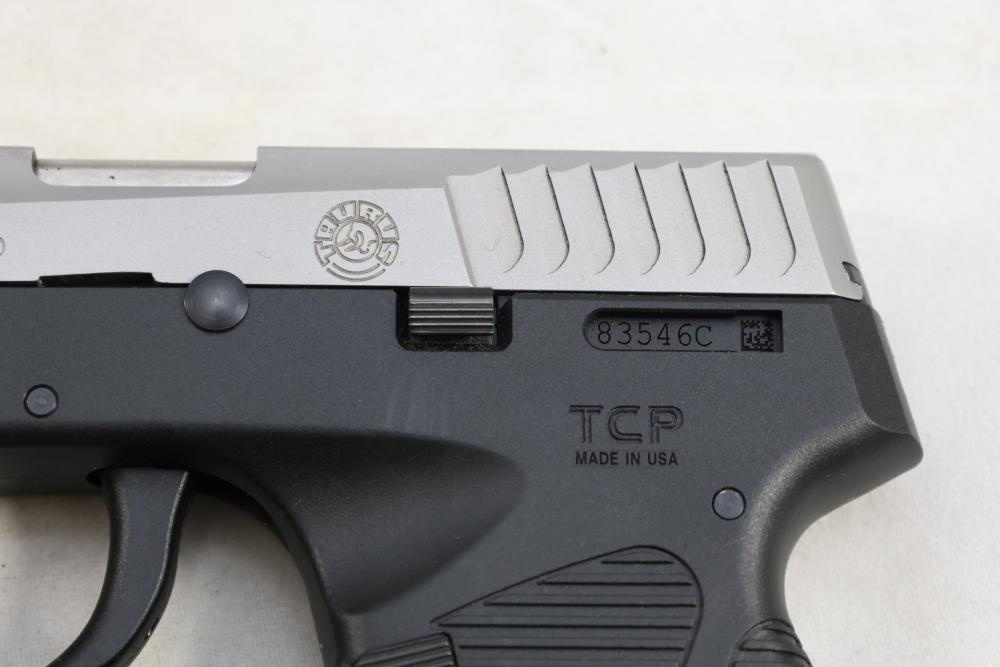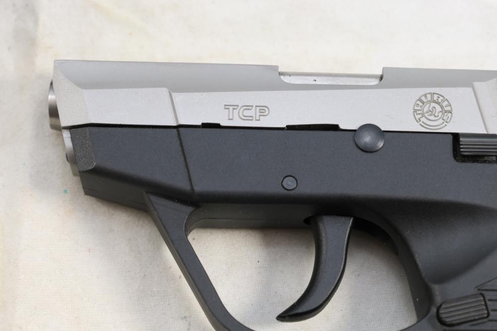 Taurus PT 738 TCP semi-automatic pistol chambered in .380 ACP, with black synthetic grips. Serial Number 83546C. All lots are subject to all applicable laws at the time of transfer. NOTE: Semi automatic rifles and all handguns require a license in NYS. There is a $35 transfer fee per long gun. There is a $40 transfer fee per hand gun. There is a $20 transfer fee per ammunition lot. If you fail the background check, the transfer fee still applies, and you are still required to make payment and then reconsign the lot to auction. FFL dealers are not exempt from these fees. A background check will be required for all buyers purchasing a firearm and/or ammunition. NYS charges a background check fee for all firearms and ammunition. The fee is $9 for firearms and $2.50 for ammunition. The NYS fee is per background check NOT per lot, will be collected directly by Civil Armory, and is in addition to any transfer All lots are subject to all applicable laws at the time of transfer. NOTE: Semi automatic rifles and all handguns require a license in NYS. There is a $35 transfer fee per long gun. There is a $40 transfer fee per hand gun. There is a $20 transfer fee per ammunition lot. If you fail the background check, the transfer fee still applies, and you are still required to make payment and then reconsign the lot to auction. FFL dealers are not exempt from these fees. A background check will be required for all buyers purchasing a firearm and/or ammunition. NYS charges a background check fee for all firearms and ammunition. The fee is $9 for firearms and $2.50 for ammunition. The NYS fee is per background check NOT per lot, will be collected directly by Civil Armory, and is in addition to any transfer
