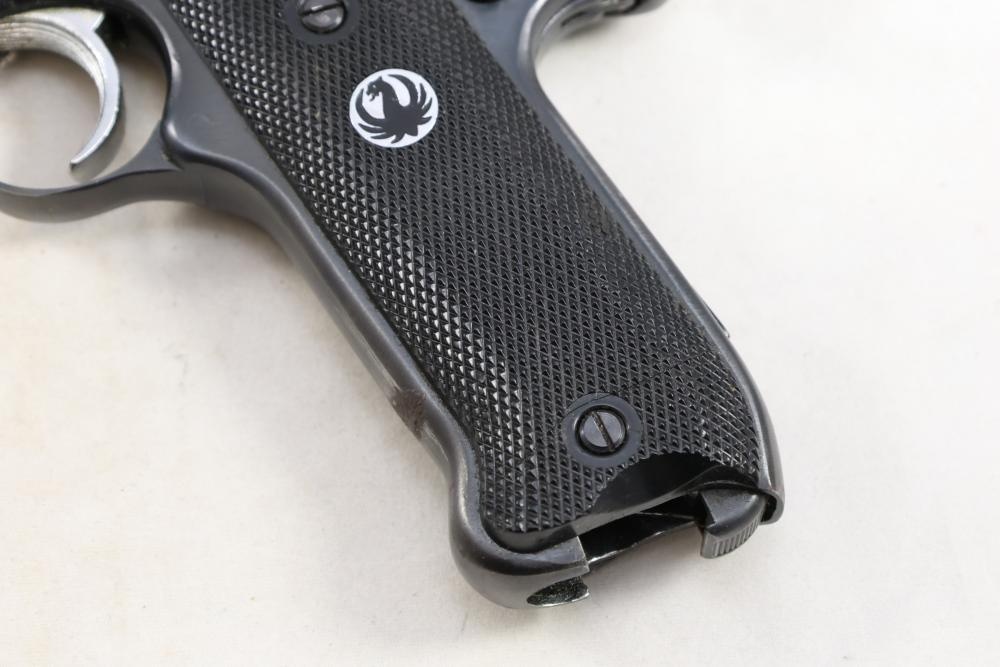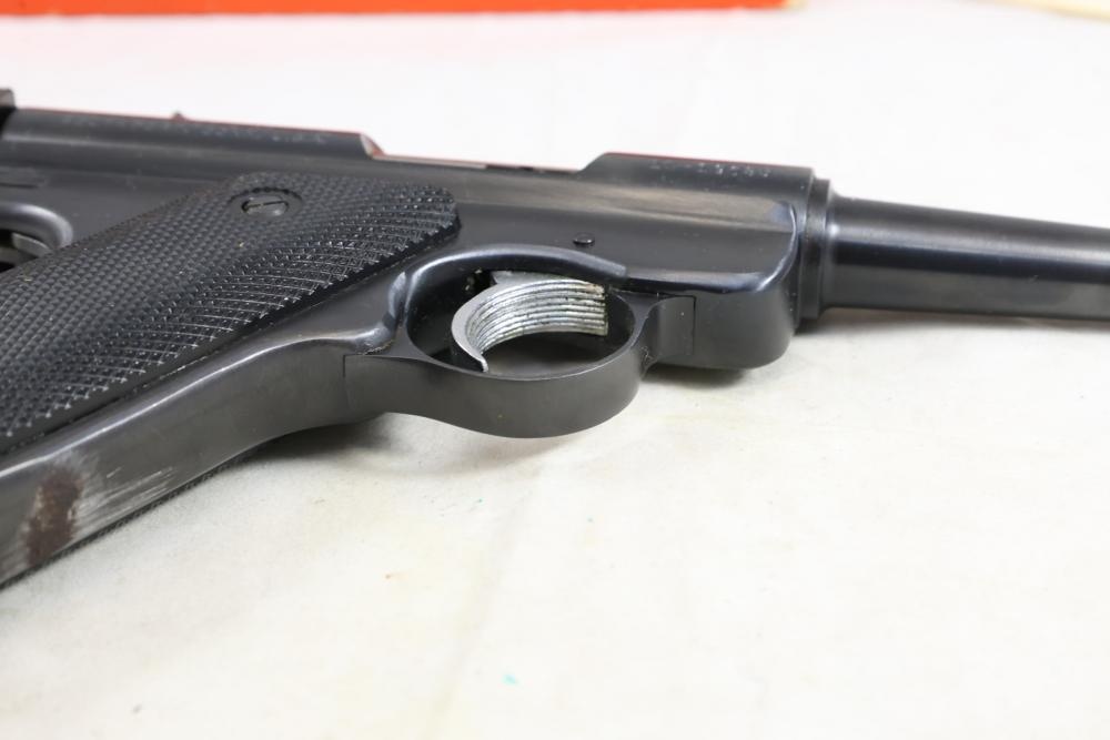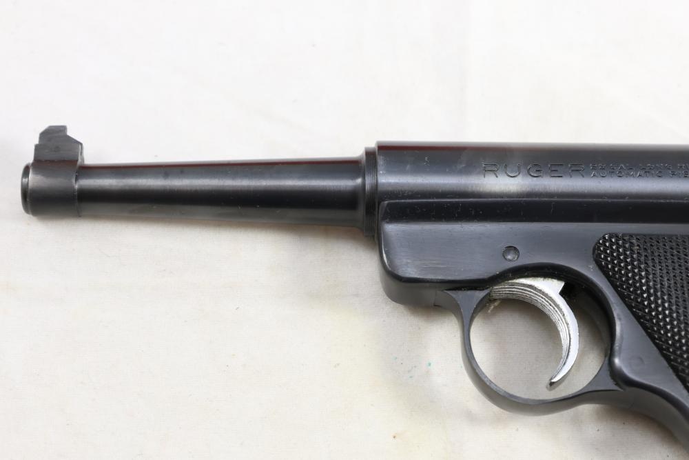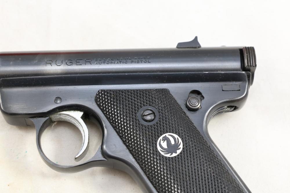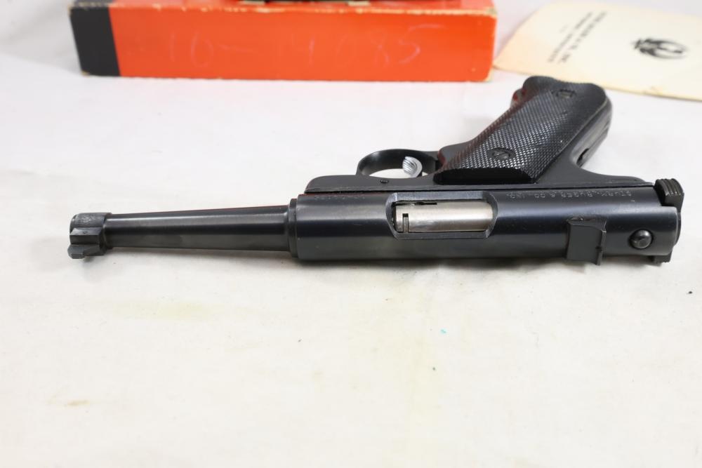 Ruger semi-automatic pistol chambered in .22 Long Rifle, with checkered black synthetic grips; accessories include two extra magazines, the original box, and paperwork. Serial Number 10-19085. All lots are subject to all applicable laws at the time of transfer. NOTE: Semi automatic rifles and all handguns require a license in NYS. There is a $35 transfer fee per long gun. There is a $40 transfer fee per hand gun. There is a $20 transfer fee per ammunition lot. If you fail the background check, the transfer fee still applies, and you are still required to make payment and then reconsign the lot to auction. FFL dealers are not exempt from these fees. A background check will be required for all buyers purchasing a firearm and/or ammunition. NYS charges a background check fee for all firearms and ammunition. The fee is $9 for firearms and $2.50 for ammunition. The NYS fee is per background check NOT per lot, will be collected directly by Civil Armory, and is in addition to transfer fees. All lots are subject to all applicable laws at the time of transfer. NOTE: Semi automatic rifles and all handguns require a license in NYS. There is a $35 transfer fee per long gun. There is a $40 transfer fee per hand gun. There is a $20 transfer fee per ammunition lot. If you fail the background check, the transfer fee still applies, and you are still required to make payment and then reconsign the lot to auction. FFL dealers are not exempt from these fees. A background check will be required for all buyers purchasing a firearm and/or ammunition. NYS charges a background check fee for all firearms and ammunition. The fee is $9 for firearms and $2.50 for ammunition. The NYS fee is per background check NOT per lot, will be collected directly by Civil Armory, and is in addition to transfer fees.