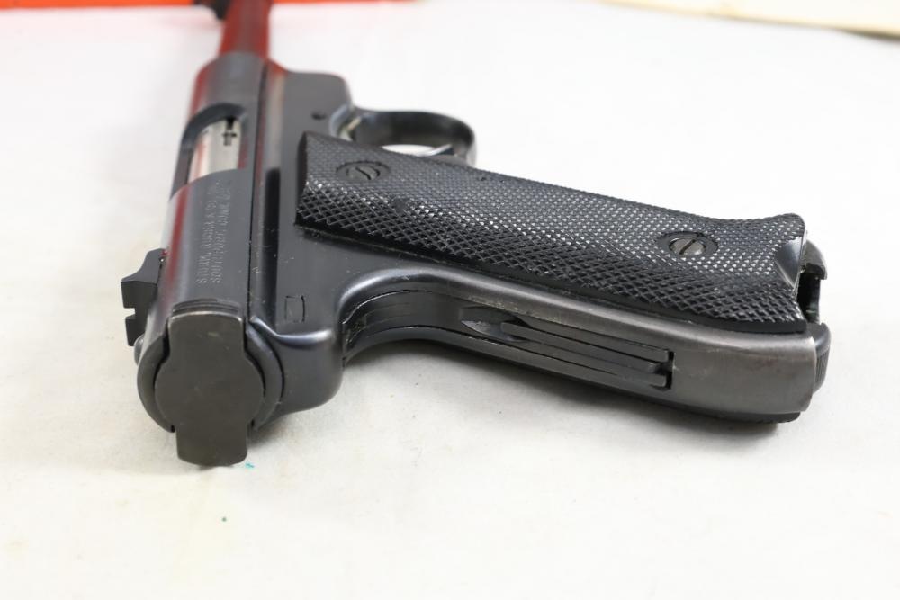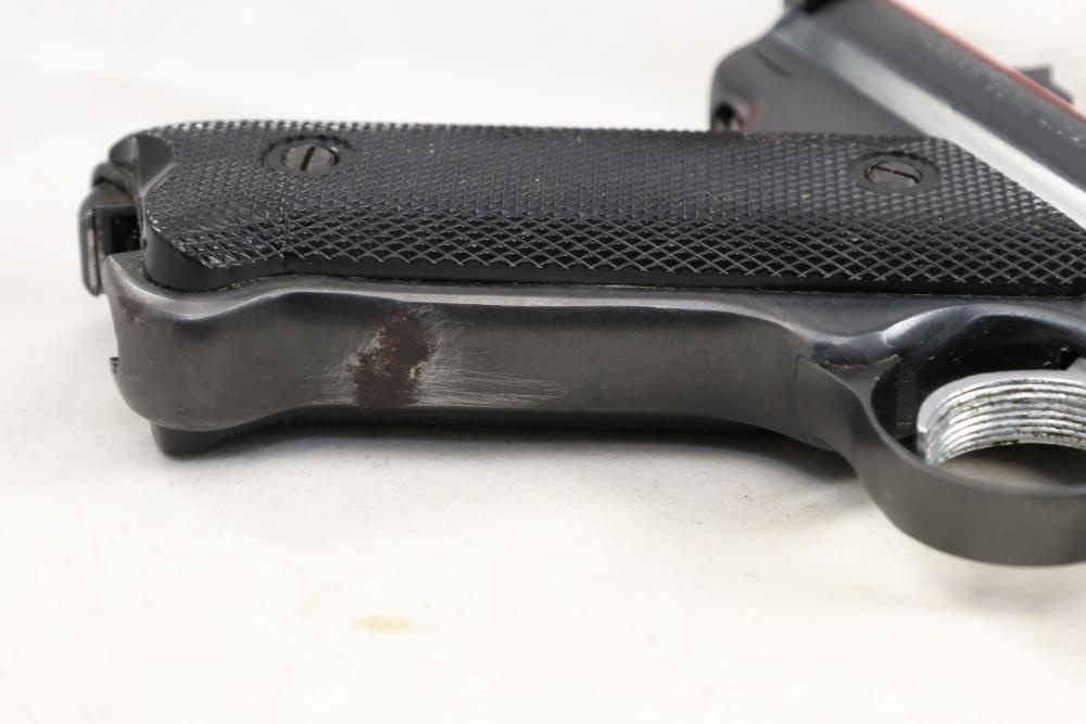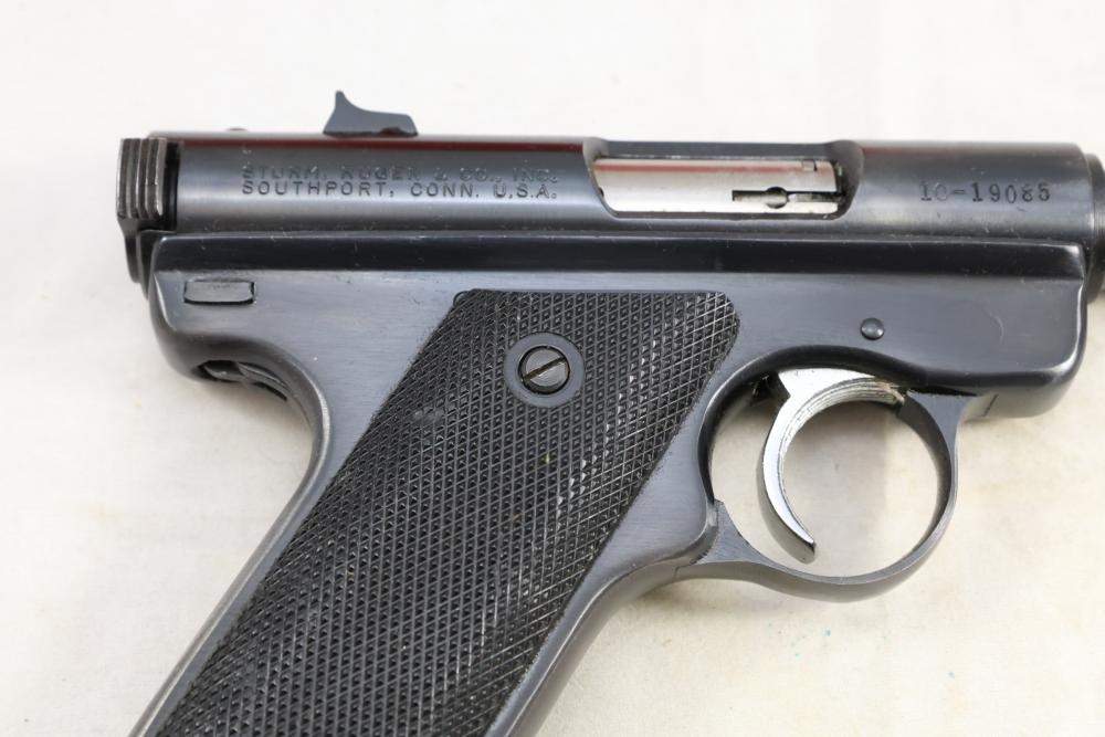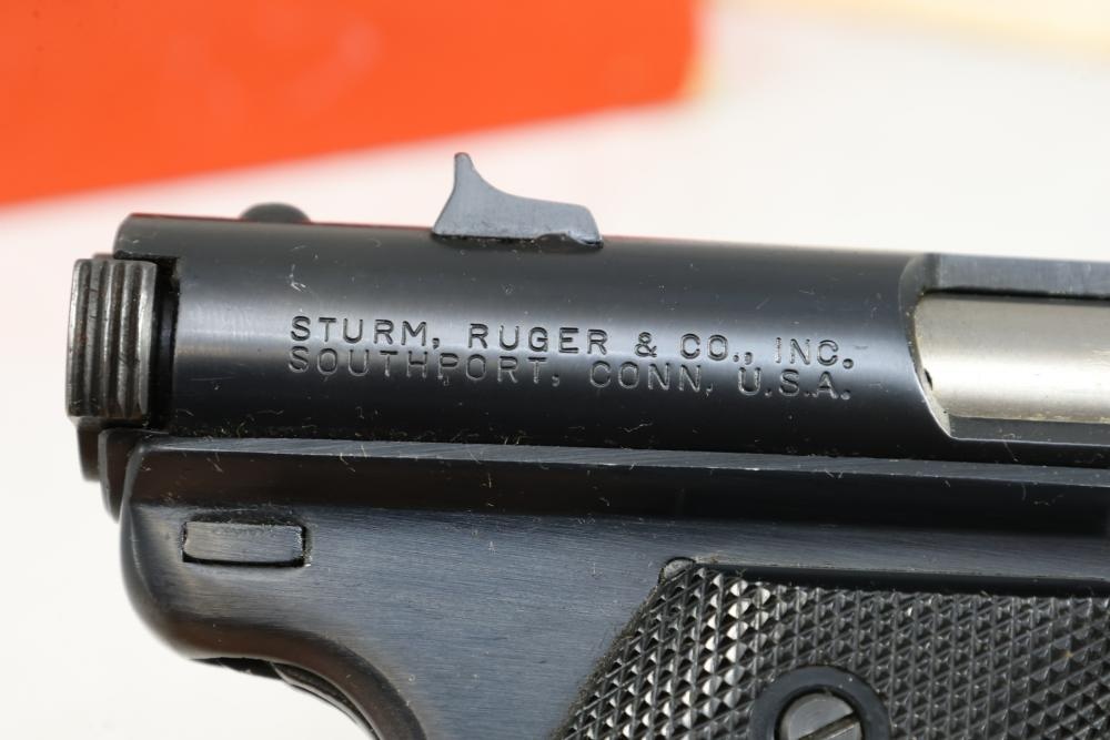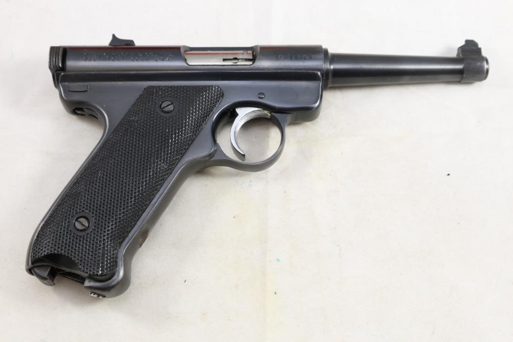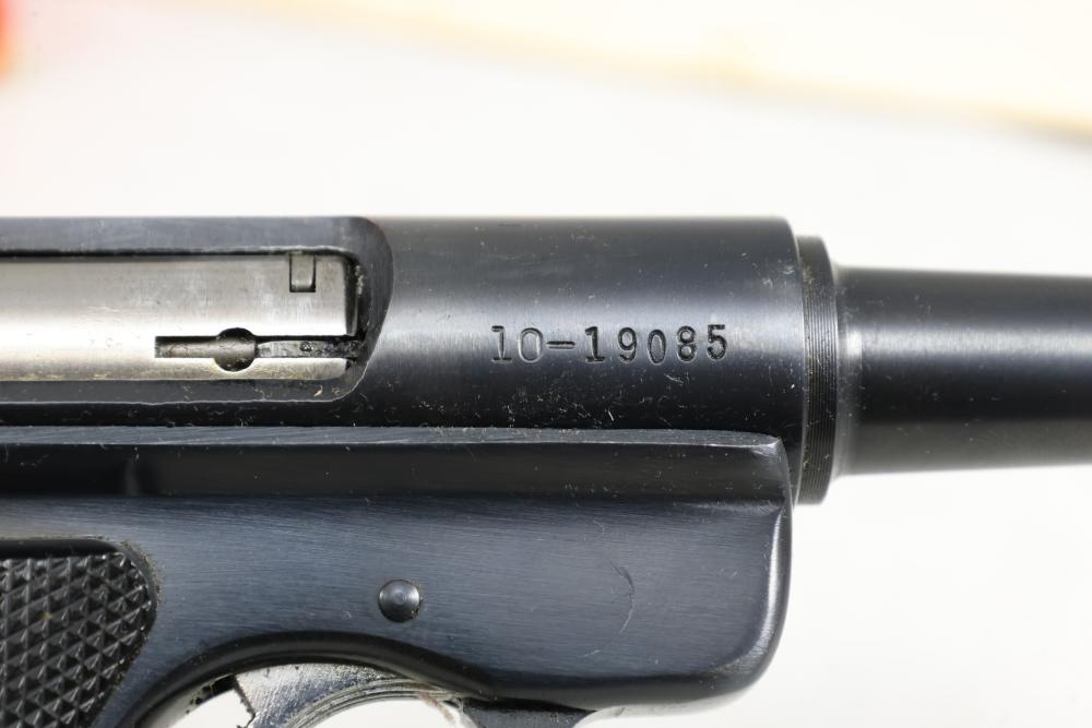 Ruger semi-automatic pistol chambered in .22 Long Rifle, with checkered black synthetic grips; accessories include two extra magazines, the original box, and paperwork. Serial Number 10-19085. All lots are subject to all applicable laws at the time of transfer. NOTE: Semi automatic rifles and all handguns require a license in NYS. There is a $35 transfer fee per long gun. There is a $40 transfer fee per hand gun. There is a $20 transfer fee per ammunition lot. If you fail the background check, the transfer fee still applies, and you are still required to make payment and then reconsign the lot to auction. FFL dealers are not exempt from these fees. A background check will be required for all buyers purchasing a firearm and/or ammunition. NYS charges a background check fee for all firearms and ammunition. The fee is $9 for firearms and $2.50 for ammunition. The NYS fee is per background check NOT per lot, will be collected directly by Civil Armory, and is in addition to transfer fees. All lots are subject to all applicable laws at the time of transfer. NOTE: Semi automatic rifles and all handguns require a license in NYS. There is a $35 transfer fee per long gun. There is a $40 transfer fee per hand gun. There is a $20 transfer fee per ammunition lot. If you fail the background check, the transfer fee still applies, and you are still required to make payment and then reconsign the lot to auction. FFL dealers are not exempt from these fees. A background check will be required for all buyers purchasing a firearm and/or ammunition. NYS charges a background check fee for all firearms and ammunition. The fee is $9 for firearms and $2.50 for ammunition. The NYS fee is per background check NOT per lot, will be collected directly by Civil Armory, and is in addition to transfer fees.