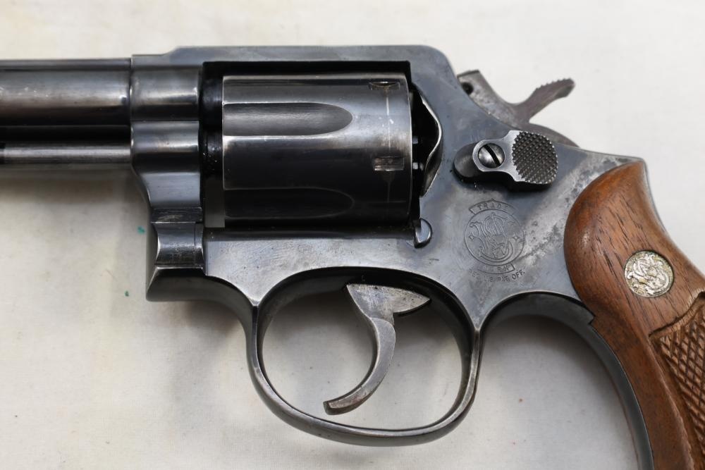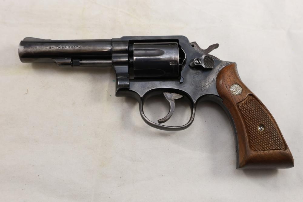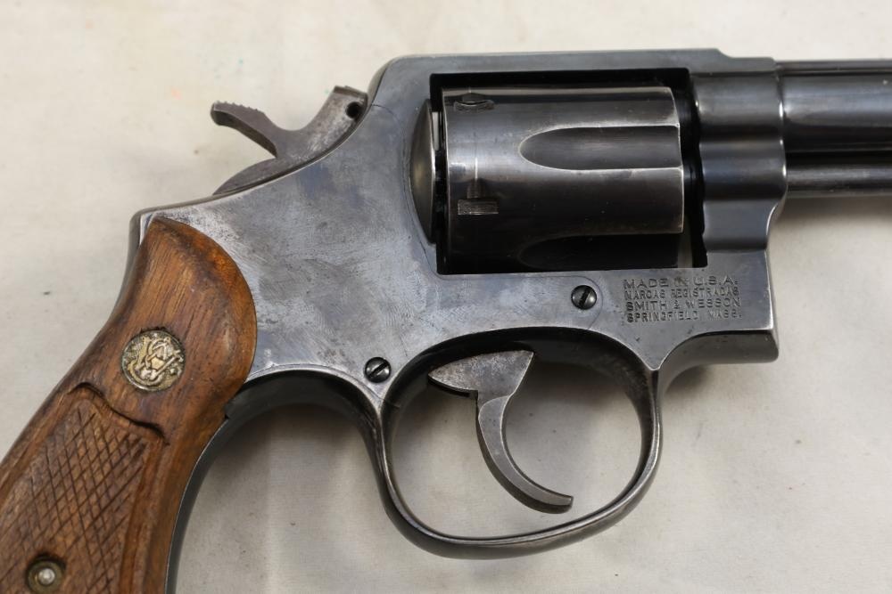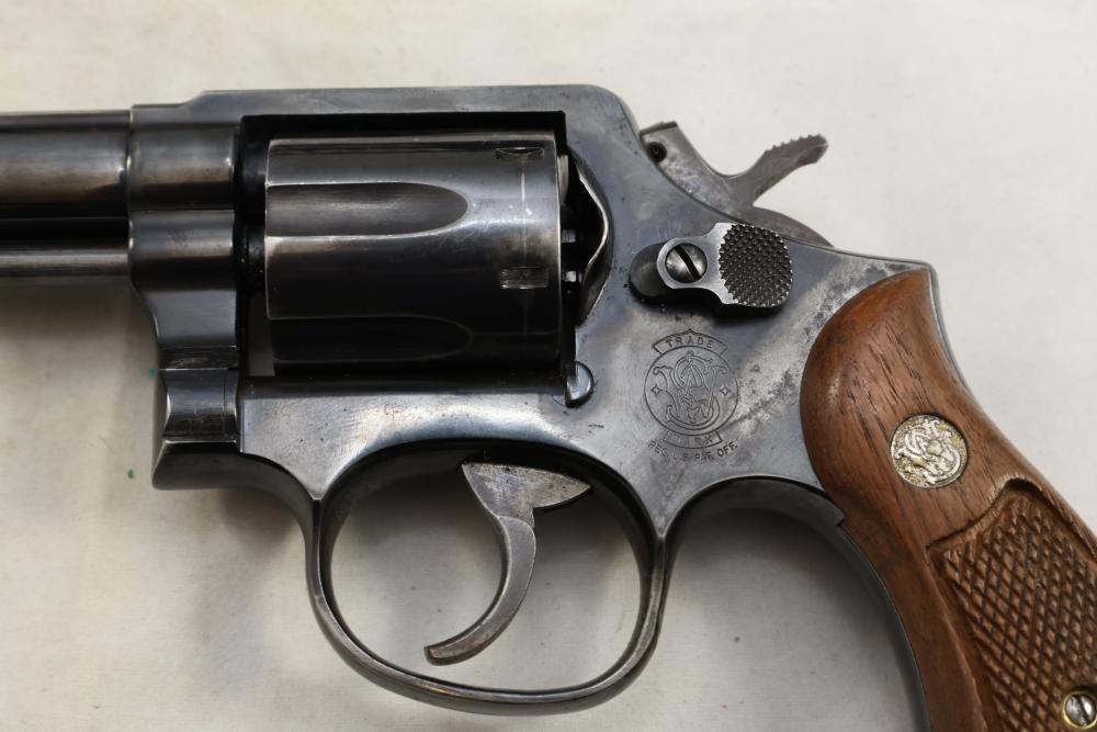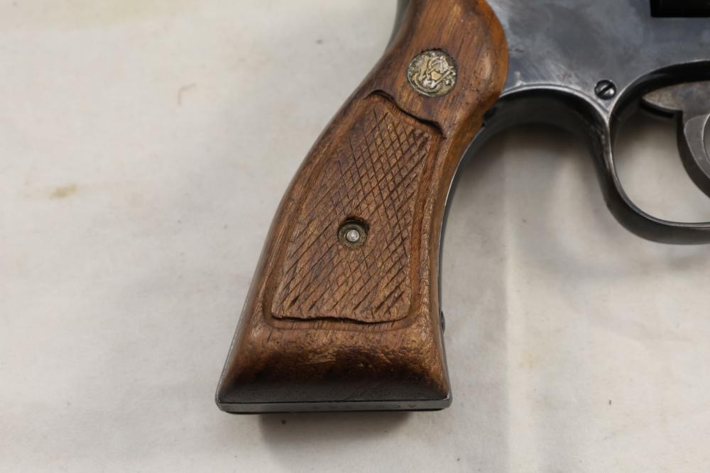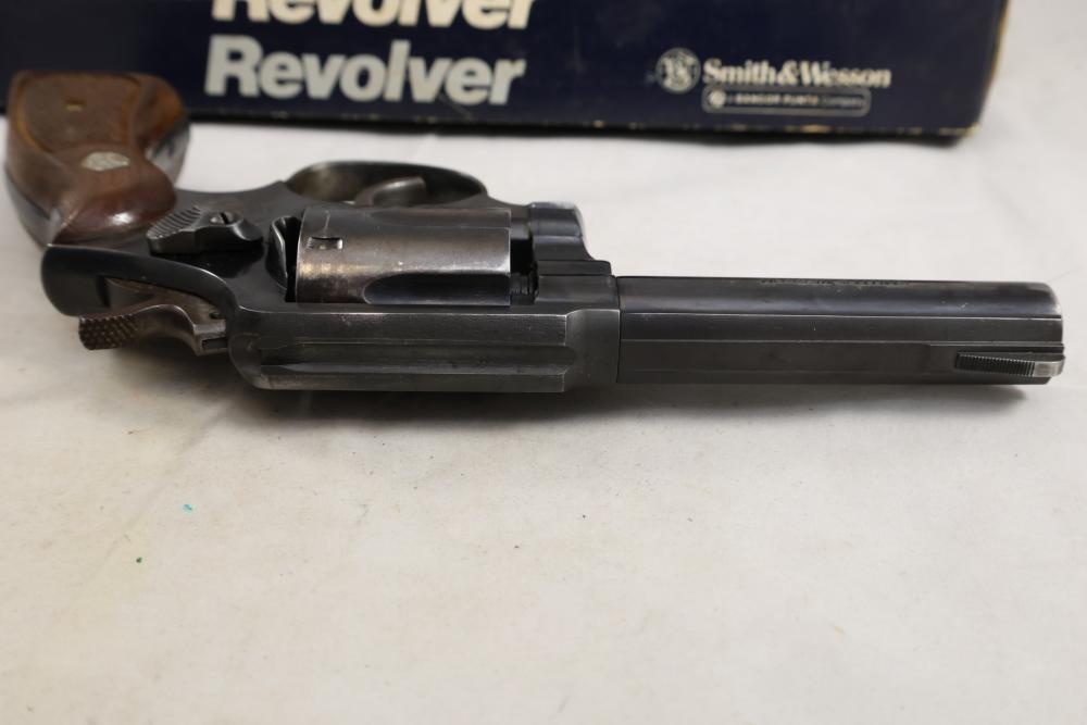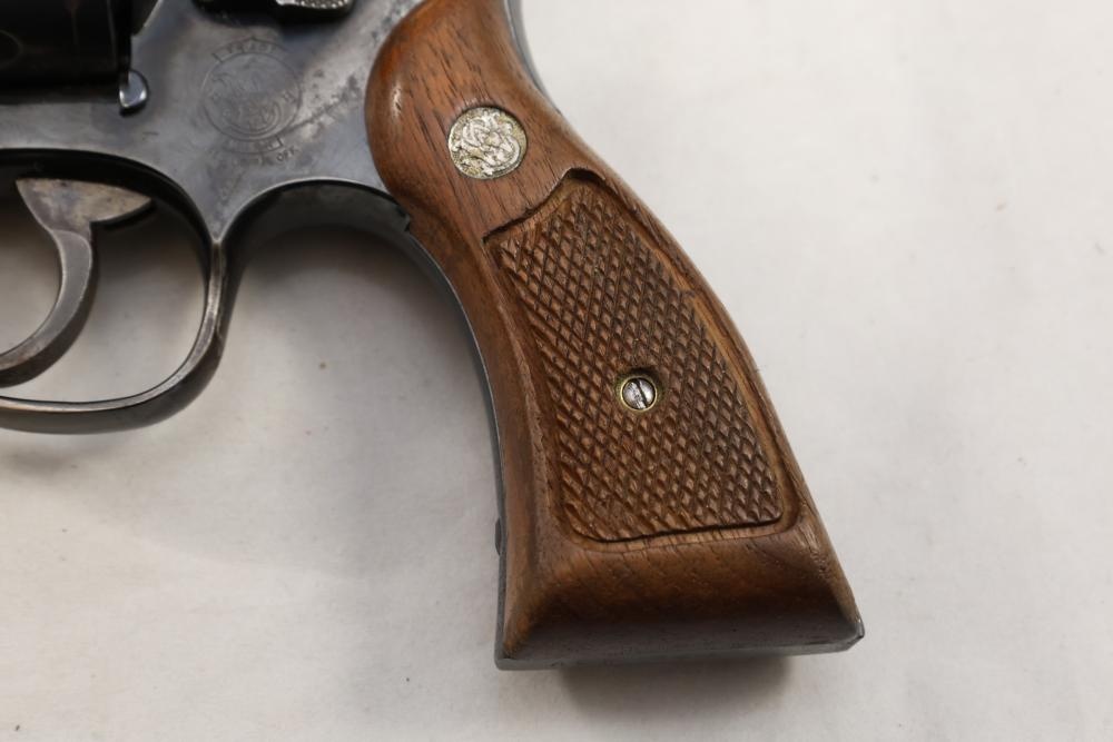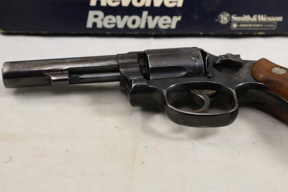 Smith & Wesson Model 10-8 revolver chambered in 38 S.&W. SPECIAL CTG. with checkered wood grips and an additional synthetic grip plus the factory box, serial number ACW9666. All lots are subject to all applicable laws at the time of transfer. NOTE: Semi automatic rifles and all handguns require a license in NYS. There is a $35 transfer fee per long gun. There is a $40 transfer fee per hand gun. There is a $20 transfer fee per ammunition lot. If you fail the background check, the transfer fee still applies, and you are still required to make payment and then reconsign the lot to auction. FFL dealers are not exempt from these fees. A background check will be required for all buyers purchasing a firearm and/or ammunition. NYS charges a background check fee for all firearms and ammunition. The fee is $9 for firearms and $2.50 for ammunition. The NYS fee is per background check NOT per lot, will be collected directly by Civil Armory, and is in addition to any transfer All lots are subject to all applicable laws at the time of transfer. NOTE: Semi automatic rifles and all handguns require a license in NYS. There is a $35 transfer fee per long gun. There is a $40 transfer fee per hand gun. There is a $20 transfer fee per ammunition lot. If you fail the background check, the transfer fee still applies, and you are still required to make payment and then reconsign the lot to auction. FFL dealers are not exempt from these fees. A background check will be required for all buyers purchasing a firearm and/or ammunition. NYS charges a background check fee for all firearms and ammunition. The fee is $9 for firearms and $2.50 for ammunition. The NYS fee is per background check NOT per lot, will be collected directly by Civil Armory, and is in addition to any transfer