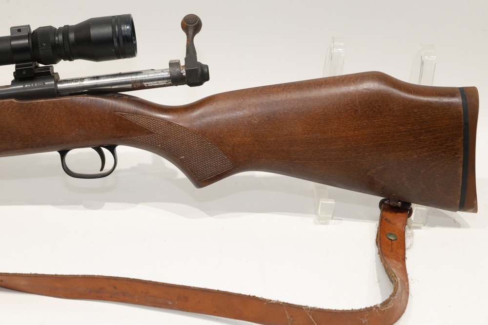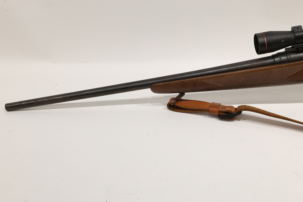 Savage Model 110 bolt action rifle chambered in .243 WIN, with a wooden stock, brown butt pad, sling, and a Simmons 3–9×32 scope. Serial Number F758809. All lots are subject to all applicable laws at the time of transfer. NOTE: Semi automatic rifles and all handguns require a license in NYS. There is a $35 transfer fee per long gun. There is a $40 transfer fee per hand gun. There is a $20 transfer fee per ammunition lot. If you fail the background check, the transfer fee still applies, and you are still required to make payment and then reconsign the lot to auction. FFL dealers are not exempt from these fees. A background check will be required for all buyers purchasing a firearm and/or ammunition. NYS charges a background check fee for all firearms and ammunition. The fee is $9 for firearms and $2.50 for ammunition. The NYS fee is per background check NOT per lot, will be collected directly by Civil Armory, and is in addition to any transfer All lots are subject to all applicable laws at the time of transfer. NOTE: Semi automatic rifles and all handguns require a license in NYS. There is a $35 transfer fee per long gun. There is a $40 transfer fee per hand gun. There is a $20 transfer fee per ammunition lot. If you fail the background check, the transfer fee still applies, and you are still required to make payment and then reconsign the lot to auction. FFL dealers are not exempt from these fees. A background check will be required for all buyers purchasing a firearm and/or ammunition. NYS charges a background check fee for all firearms and ammunition. The fee is $9 for firearms and $2.50 for ammunition. The NYS fee is per background check NOT per lot, will be collected directly by Civil Armory, and is in addition to any transfer