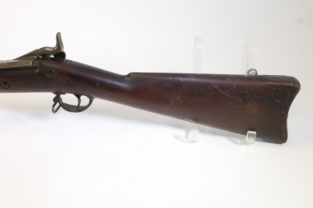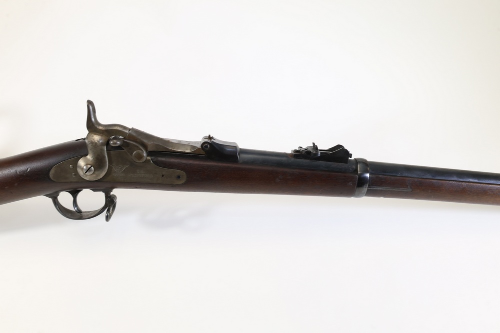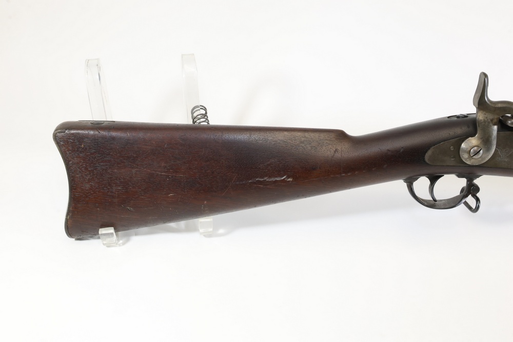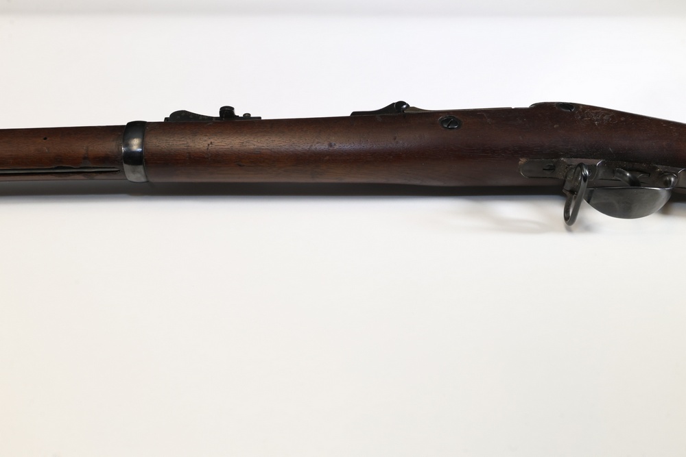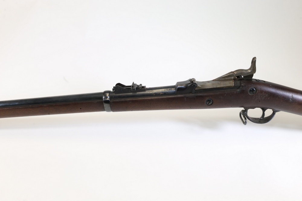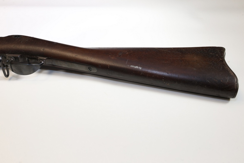 U.S. Model 1873 Springfield trapdoor rifle chambered in .45-70 Gov., with a wood stock, steel butt plate, sling swivels, and iron sights. Serial Number 156632. All lots are subject to all applicable laws at the time of transfer. NOTE: Semi automatic rifles and all handguns require a license in NYS. There is a $35 transfer fee per long gun. There is a $40 transfer fee per hand gun. There is a $20 transfer fee per ammunition lot. If you fail the background check, the transfer fee still applies, and you are still required to make payment and then reconsign the lot to auction. FFL dealers are not exempt from these fees. A background check will be required for all buyers purchasing a firearm and/or ammunition. NYS charges a background check fee for all firearms and ammunition. The fee is $9 for firearms and $2.50 for ammunition. The NYS fee is per background check NOT per lot, will be collected directly by Civil Armory, and is in addition to any transfer All lots are subject to all applicable laws at the time of transfer. NOTE: Semi automatic rifles and all handguns require a license in NYS. There is a $35 transfer fee per long gun. There is a $40 transfer fee per hand gun. There is a $20 transfer fee per ammunition lot. If you fail the background check, the transfer fee still applies, and you are still required to make payment and then reconsign the lot to auction. FFL dealers are not exempt from these fees. A background check will be required for all buyers purchasing a firearm and/or ammunition. NYS charges a background check fee for all firearms and ammunition. The fee is $9 for firearms and $2.50 for ammunition. The NYS fee is per background check NOT per lot, will be collected directly by Civil Armory, and is in addition to any transfer