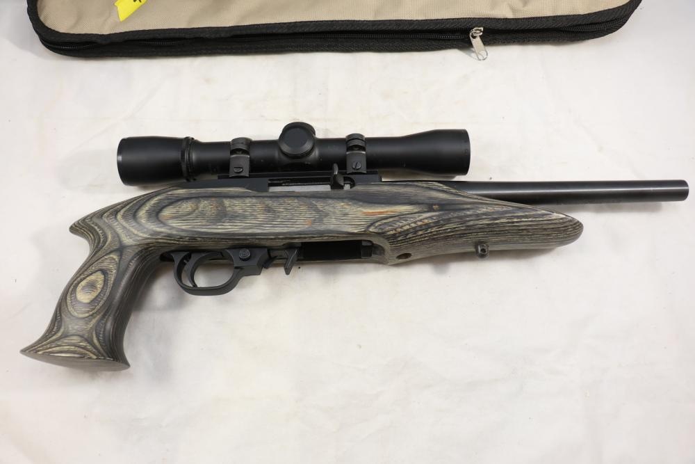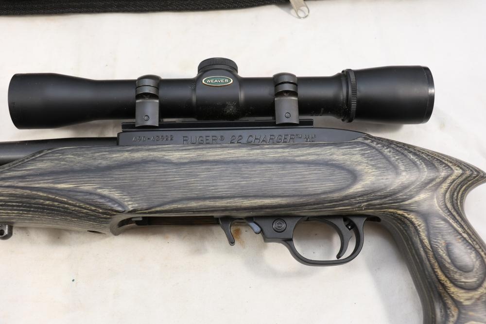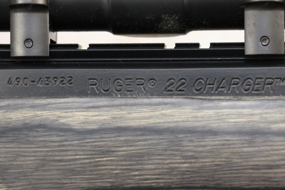 Ruger Charger semi-automatic pistol chambered in .22 LR. With a wood stock, 4 X 28mm Weaver Scope, and Ruger branded soft case. Serial number 490-43922. NO magazine. Not for transfer in NYS unless FFL & NYS dealer or Law Enforcement. All lots are subject to all applicable laws at the time of transfer. NOTE: Semi automatic rifles and all handguns require a license in NYS. There is a $35 transfer fee per long gun. There is a $40 transfer fee per hand gun. There is a $20 transfer fee per ammunition lot. If you fail the background check, the transfer fee still applies, and you are still required to make payment and then reconsign the lot to auction. FFL dealers are not exempt from these fees. A background check will be required for all buyers purchasing a firearm and/or ammunition. NYS charges a background check fee for all firearms and ammunition. The fee is $9 for firearms and $2.50 for ammunition. The NYS fee is per background check NOT per lot, will be collected directly by Civil Armory, and is in addition to transfer fees. All lots are subject to all applicable laws at the time of transfer. NOTE: Semi automatic rifles and all handguns require a license in NYS. There is a $35 transfer fee per long gun. There is a $40 transfer fee per hand gun. There is a $20 transfer fee per ammunition lot. If you fail the background check, the transfer fee still applies, and you are still required to make payment and then reconsign the lot to auction. FFL dealers are not exempt from these fees. A background check will be required for all buyers purchasing a firearm and/or ammunition. NYS charges a background check fee for all firearms and ammunition. The fee is $9 for firearms and $2.50 for ammunition. The NYS fee is per background check NOT per lot, will be collected directly by Civil Armory, and is in addition to transfer fees.