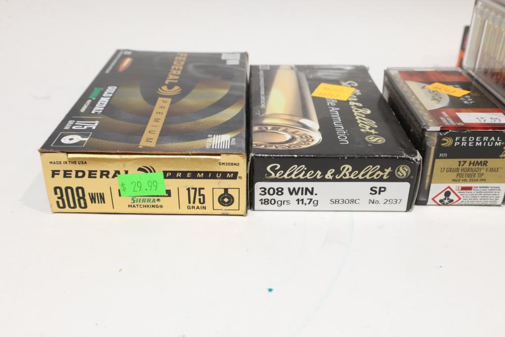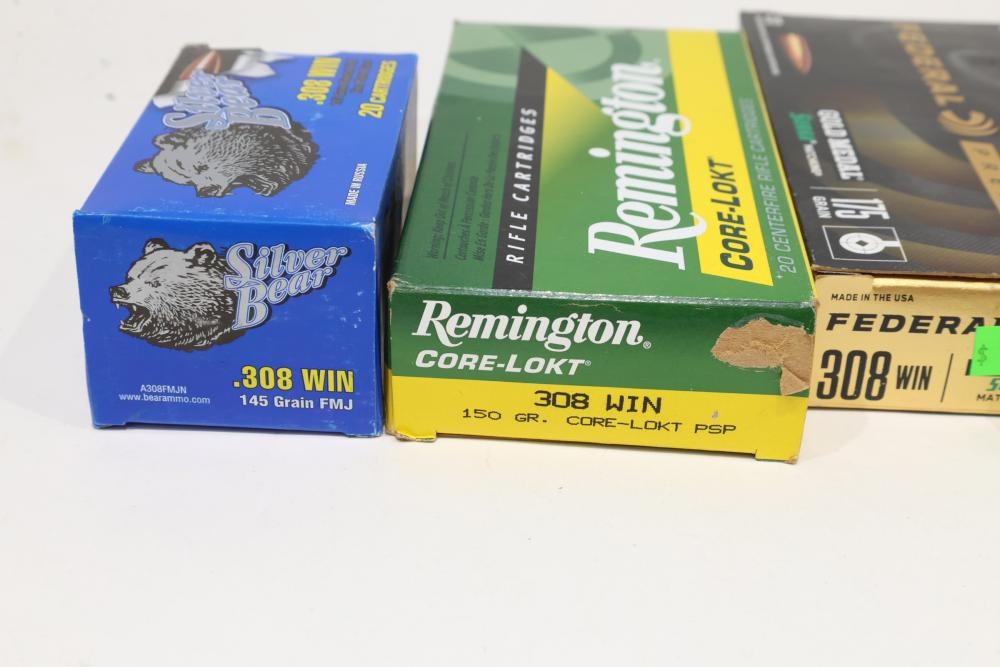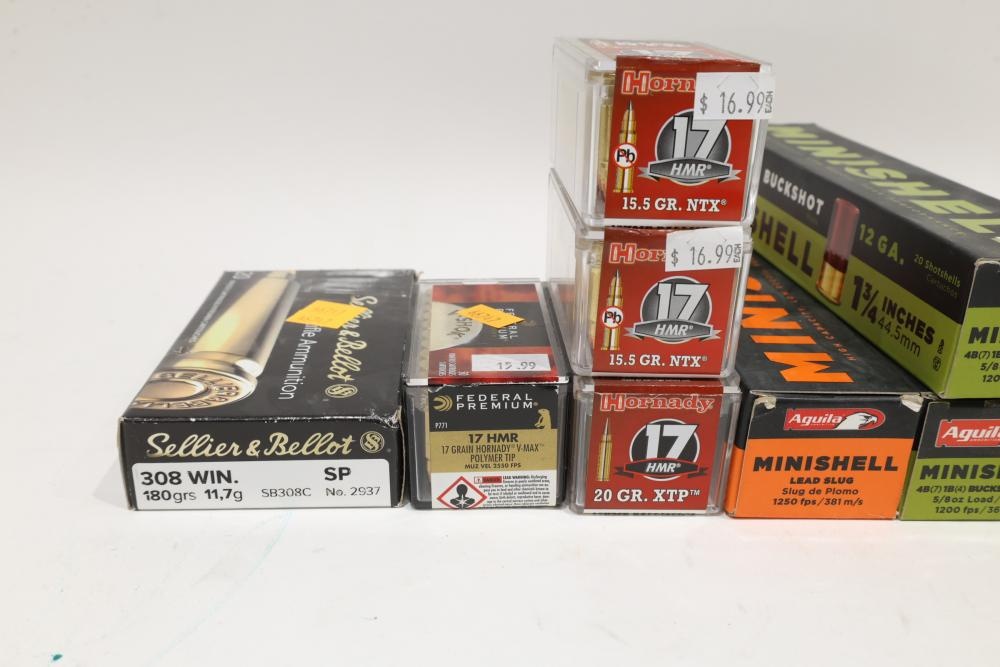 Ammunition including Silver Bear .308 Win 145 gr FMJ (20 rounds), Remington Core-Lokt .308 Win 150 gr PSP (20 rounds), Federal Premium Gold Medal .308 Win 175 gr Sierra MatchKing (20 rounds), Sellier & Bellot .308 Win 180 gr SP (20 rounds), multiple boxes of Hornady and Federal Premium 17 HMR in 15.5 gr NTX, 17 gr V-Max, and 20 gr XTP loads, and Aguila 12 ga Minishell cartridges in buckshot, slug, and 7-1/2 shot configurations, along with a bagged assortment of loose .308 Win cartridges. All lots are subject to all applicable laws at the time of transfer. NOTE: Semi automatic rifles and all handguns require a license in NYS. There is a $35 transfer fee per long gun. There is a $40 transfer fee per hand gun. There is a $20 transfer fee per ammunition lot. If you fail the background check, the transfer fee still applies, and you are still required to make payment and then reconsign the lot to auction. FFL dealers are not exempt from these fees. A background check will be required for all buyers purchasing a firearm and/or ammunition. NYS charges a background check fee for all firearms and ammunition. The fee is $9 for firearms and $2.50 for ammunition. The NYS fee is per background check NOT per lot, will be collected directly by Civil Armory, and is in addition to transfer fees. All lots are subject to all applicable laws at the time of transfer. NOTE: Semi automatic rifles and all handguns require a license in NYS. There is a $35 transfer fee per long gun. There is a $40 transfer fee per hand gun. There is a $20 transfer fee per ammunition lot. If you fail the background check, the transfer fee still applies, and you are still required to make payment and then reconsign the lot to auction. FFL dealers are not exempt from these fees. A background check will be required for all buyers purchasing a firearm and/or ammunition. NYS charges a background check fee for all firearms and ammunition. The fee is $9 for firearms and $2.50 for ammunition. The NYS fee is per background check NOT per lot, will be collected directly by Civil Armory, and is in addition to transfer fees.