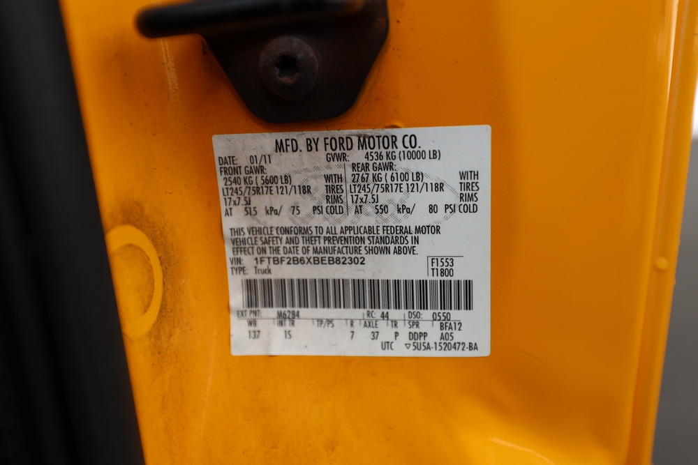 2011 Ford F-250 Super Duty XL. VIN: 1FTBF2B6XBEB82302. Body: Regular Cab 2D. Engine: 6.2L V8 SEFI Flex Fuel. Odometer reading: 117385, Hours reading: 8835. Runs, drives. 4X4, Backrack Safety Rack. New front track bar, steering damper, drag link, brakes only two months old. Title & key available. Location: Mid Hudson.