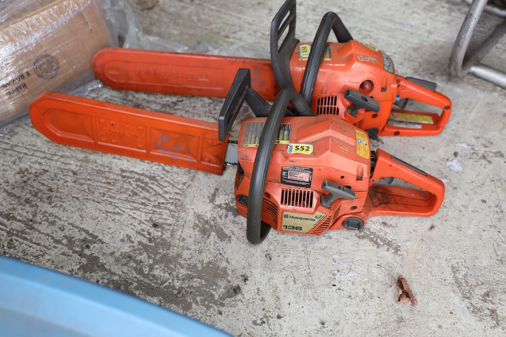 Landscaping equipment including Husqvarna Leaf Vac, and two Husqvarna chainsaws. Seller reports: Haven't been used in years. Location: Mid-Hudson.