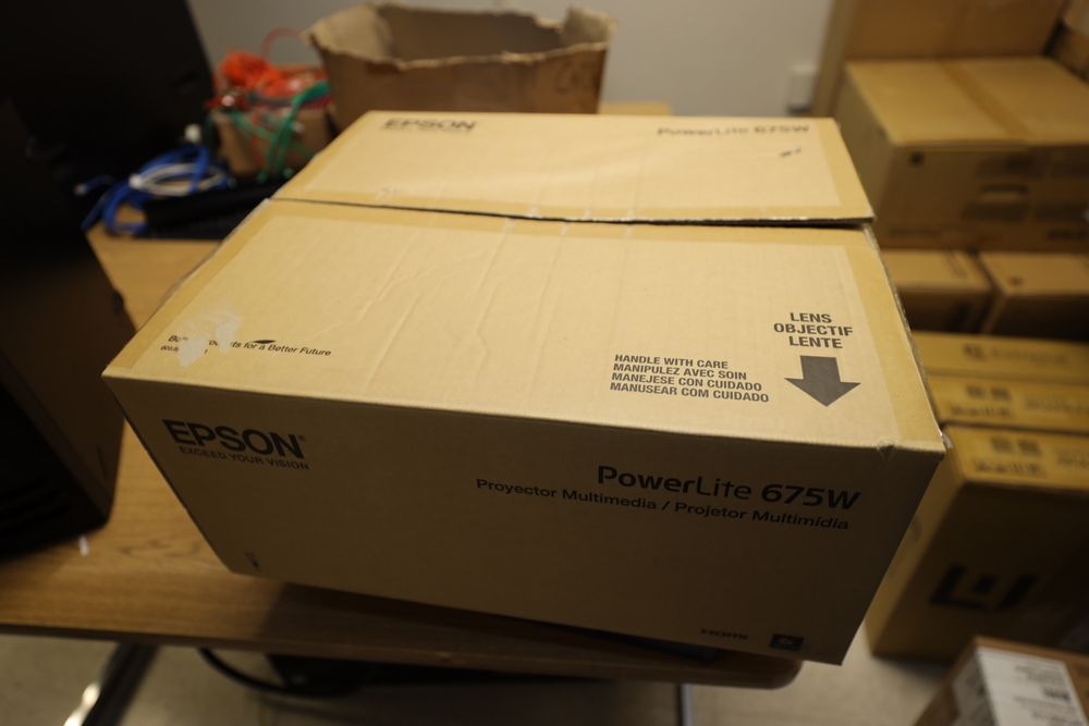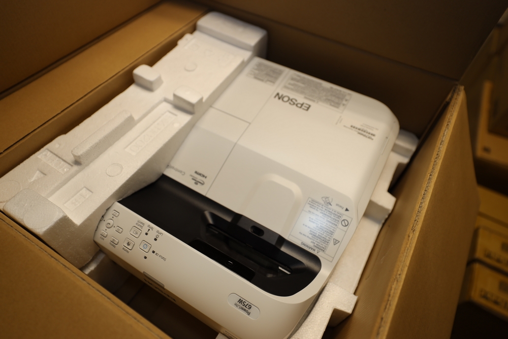 (2) Epson PowerLite 675W 3200-Lumen WXGA Ultra-Short Throw 3LCD Projector. In box, includes setting plate mount. Photos shown for reference.