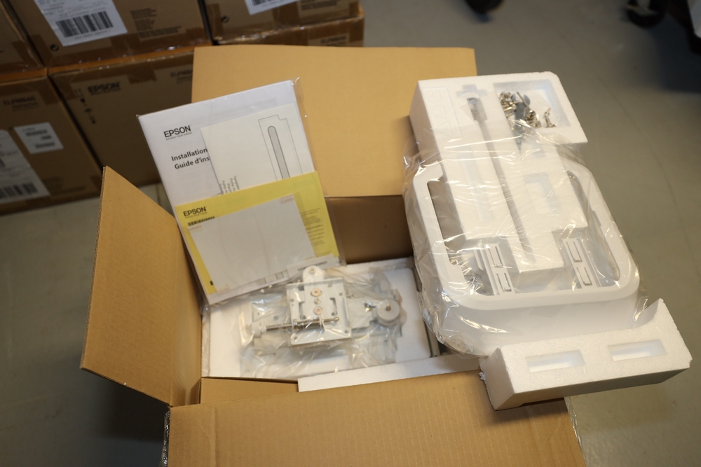 (5) Epson PowerLite 675W 3200-Lumen WXGA Ultra-Short Throw 3LCD Projector. In box, includes setting plate mount. Photos shown for reference.
