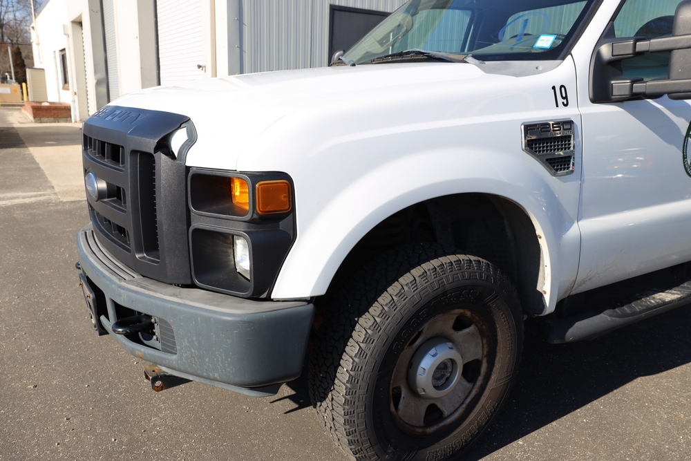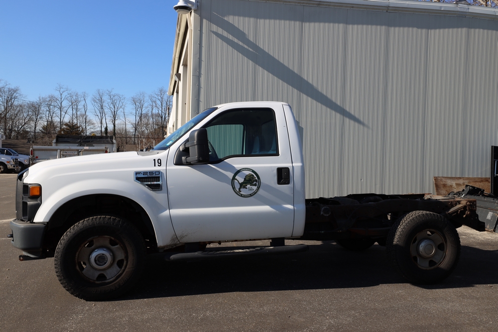 Items include 2008 Ford F-250 Super Duty XL cab & chassis; 2006 Dodge Caravan C/V; 2006 Ford Crown Victoria Police Interceptor; Fermec 750 back hoe loader; golf cart & Hustler Super Z 72" mower. Items are located in Middle Island, NY.