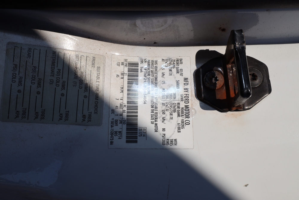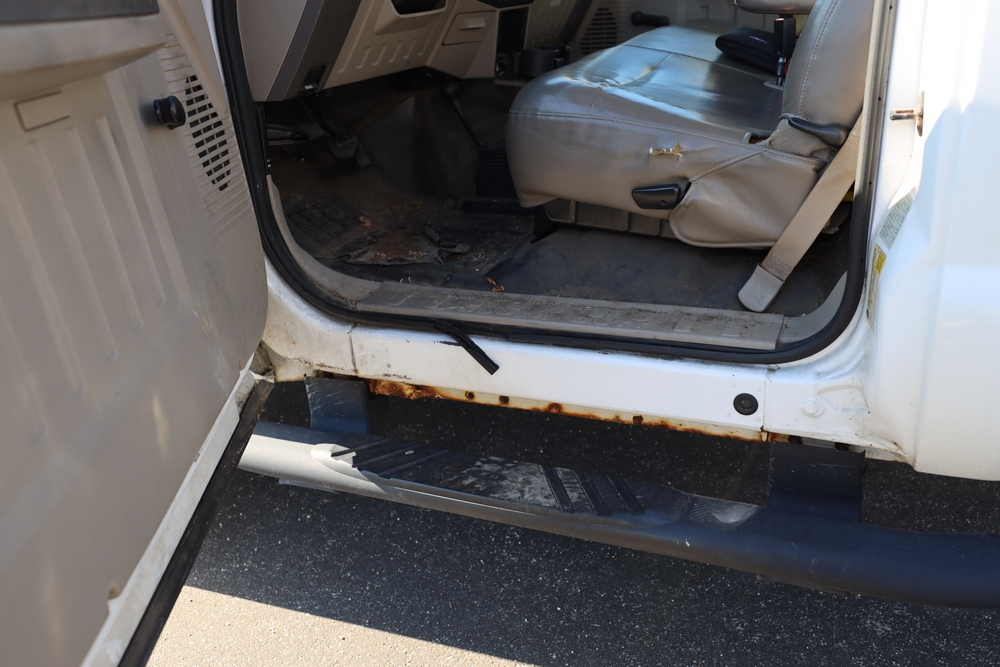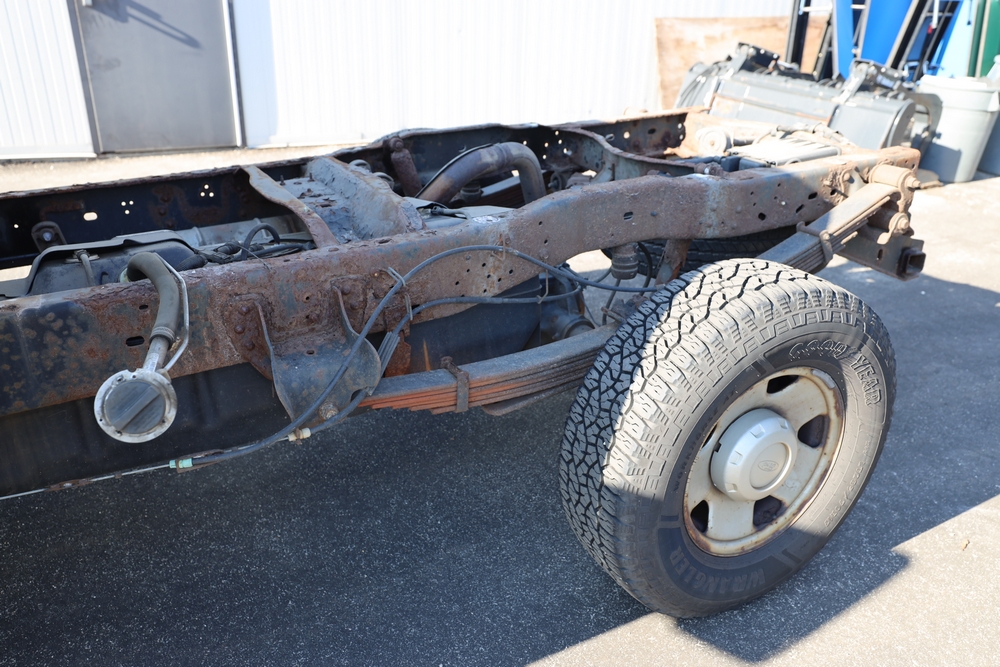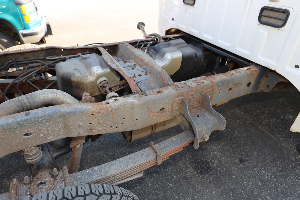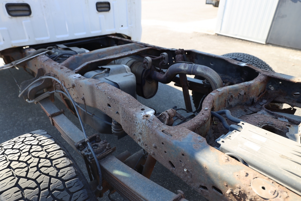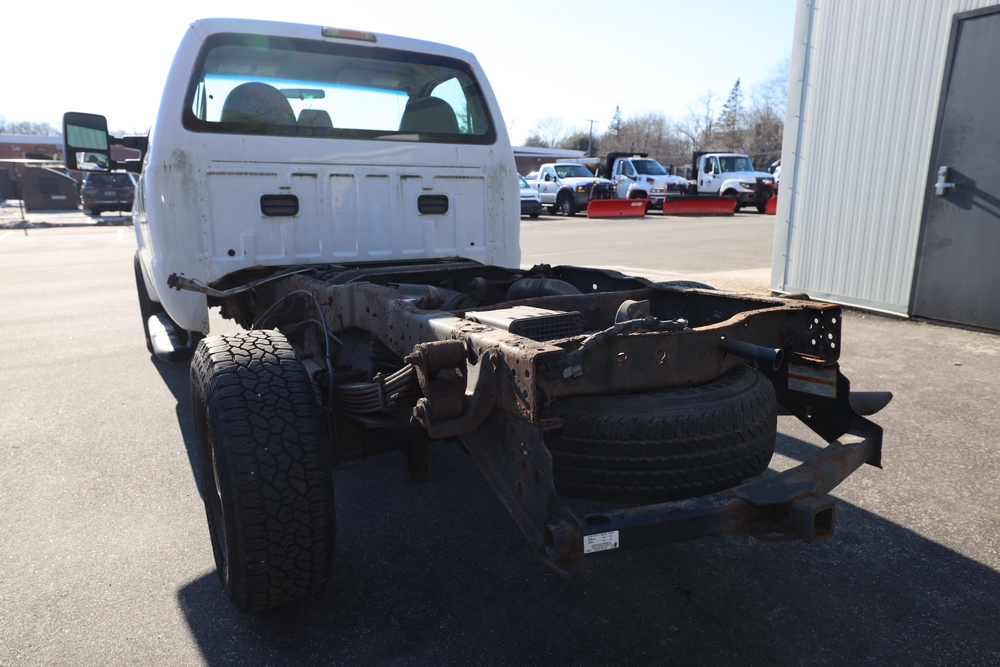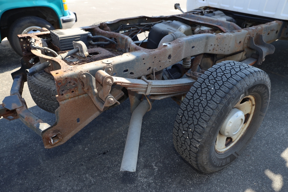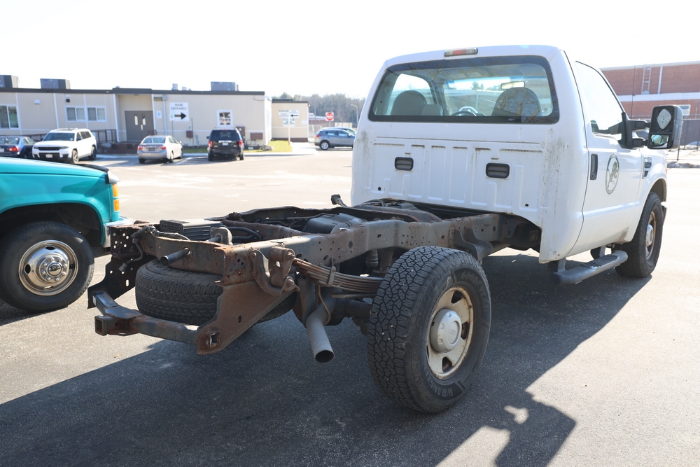 2008 Ford F-250 Super Duty XL cab & chassis. VIN: 1FTNF21578EA54954. Body: Regular Cab 2D. Engine: 5.4L V8 SMPI Gasoline. Odometer reading: 115673. Seller reports: Frame Deteriorated/Rusted, Suspension mounting points rotted (shown in photo), cracked windshield.