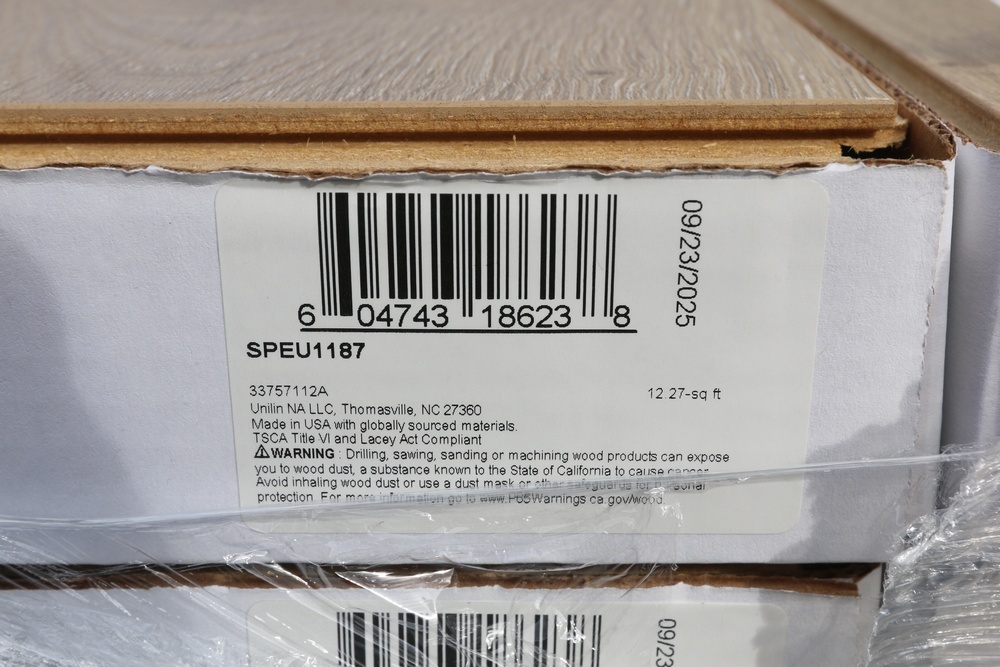 Lot is for 60 cartons of new laminate flooring. 12.27 square feet per carton. 736.20 total square feet. Manufacturer is Mohawk. Product is Revwood Select Boardwalk Collective Sand Dune. This product is Waterproof. Uni-Clic floating locking system. 2nd quality indicating up to 10% of product may have minor imperfections such as markings, off-shade, blister/missing spot of wood grain, sample board. Sold by: Square Foot. Sold as: Price X Quantity.