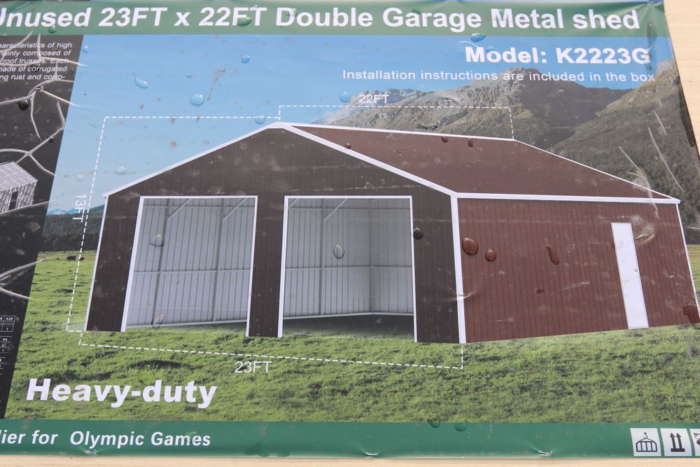 New 2026 KJ 23'x22' Double Garage Metal shed, model K2223G.