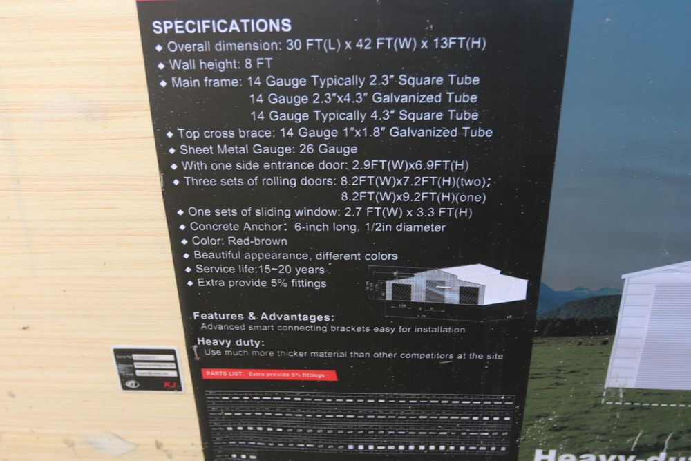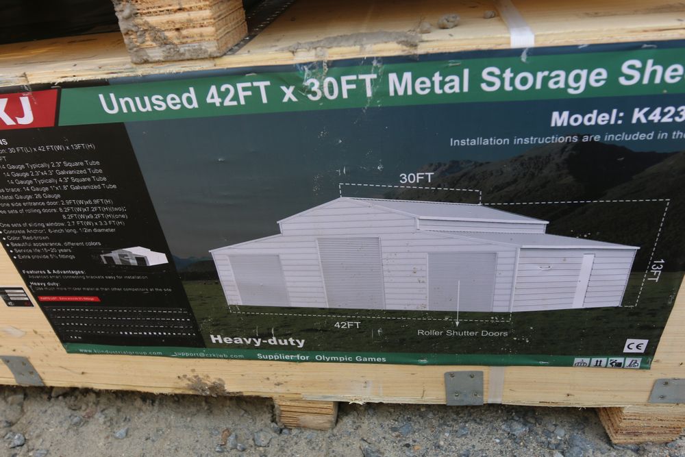 New 2026 Metal Storage Shed 42FT x 30FT Metal Storage Shed model K4230W, in wooden crate.