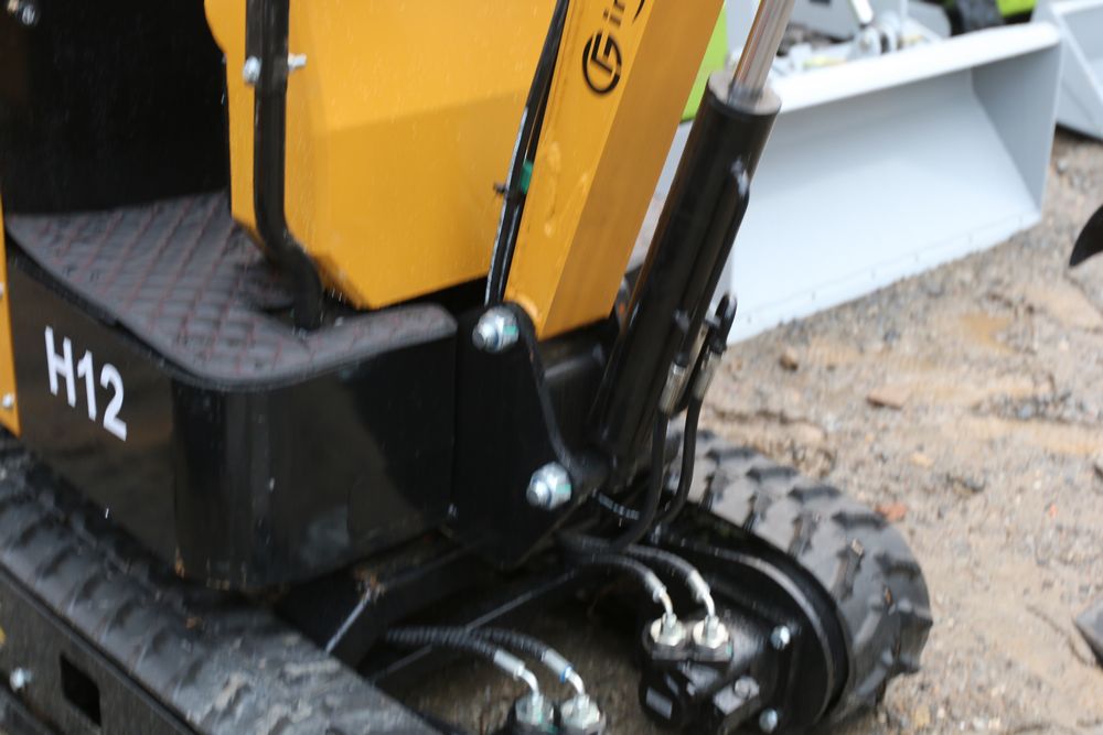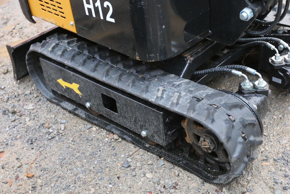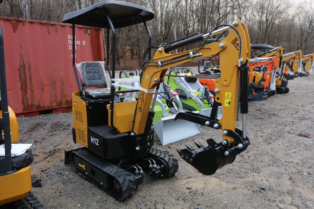 New 2025 CFG Industrial mini excavator model: H12 with 13.5 HP Briggs & Stratton engine, rubber tracks, dozer blade, and manual thumb.