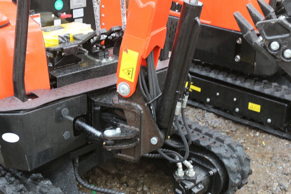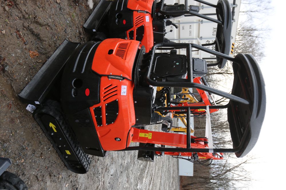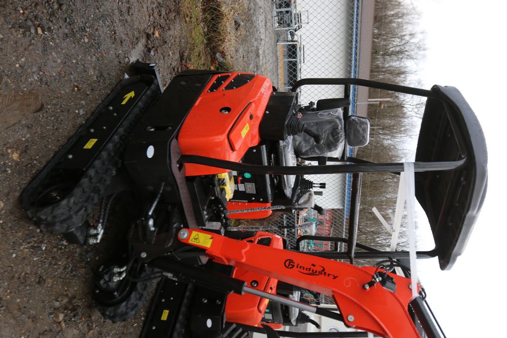 New 2025 CFG Industrial mini excavator model NT20-CZ, RATO 23HP 16.8KW gasoline engine with EPA, bucket, thumb, canopy cover, dozer blade, hand and foot controls. Hours reading less than 1 hour.