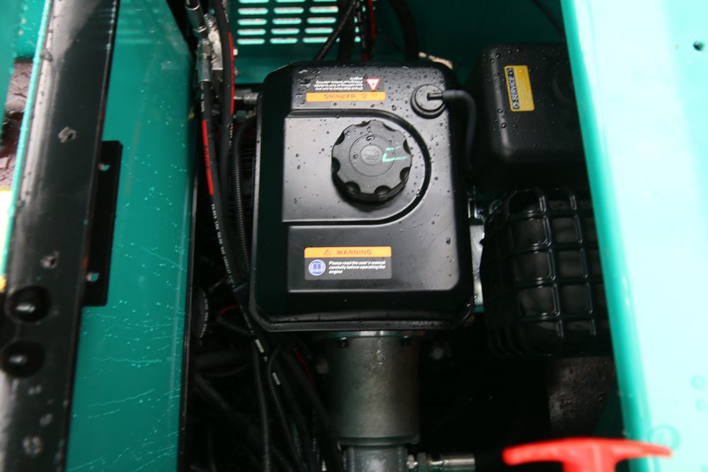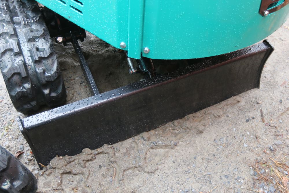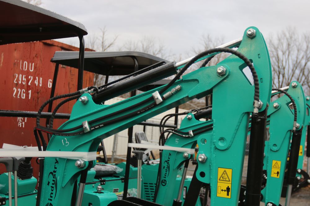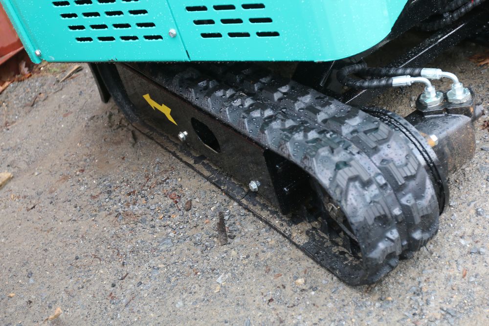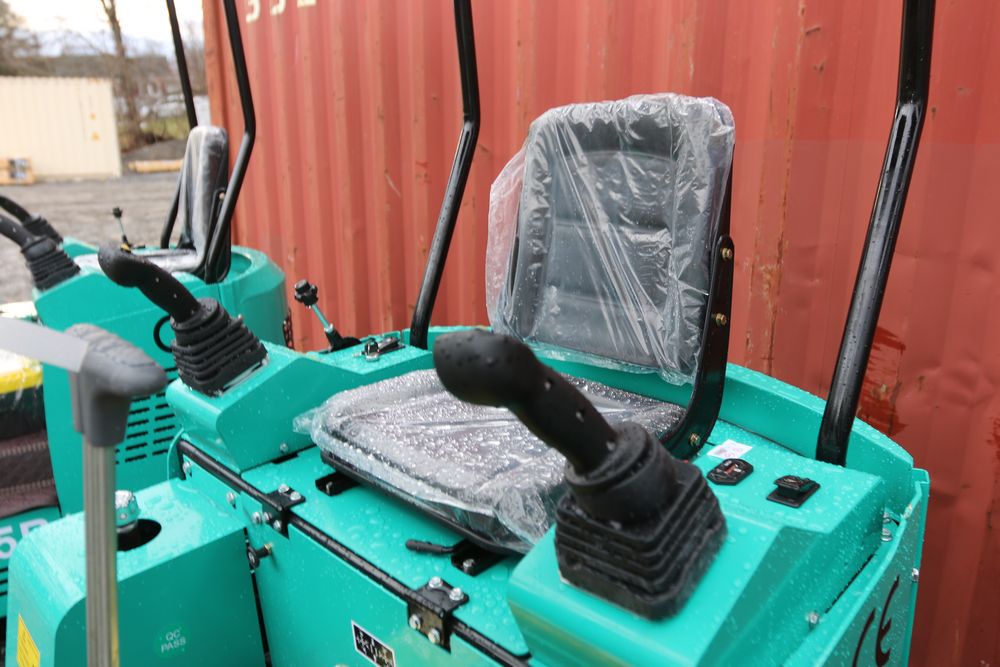 New 2025 CFG Industrial gas powered mini Excavator model H15R with 420cc gasoline engine, bucket, 4' long tracks, 38.5" wide base, 6" wide tracks, canopy, hydraulic boom & bucket controls, pilot system, thumb, dozer blade. Hours reading less than 1 hour.