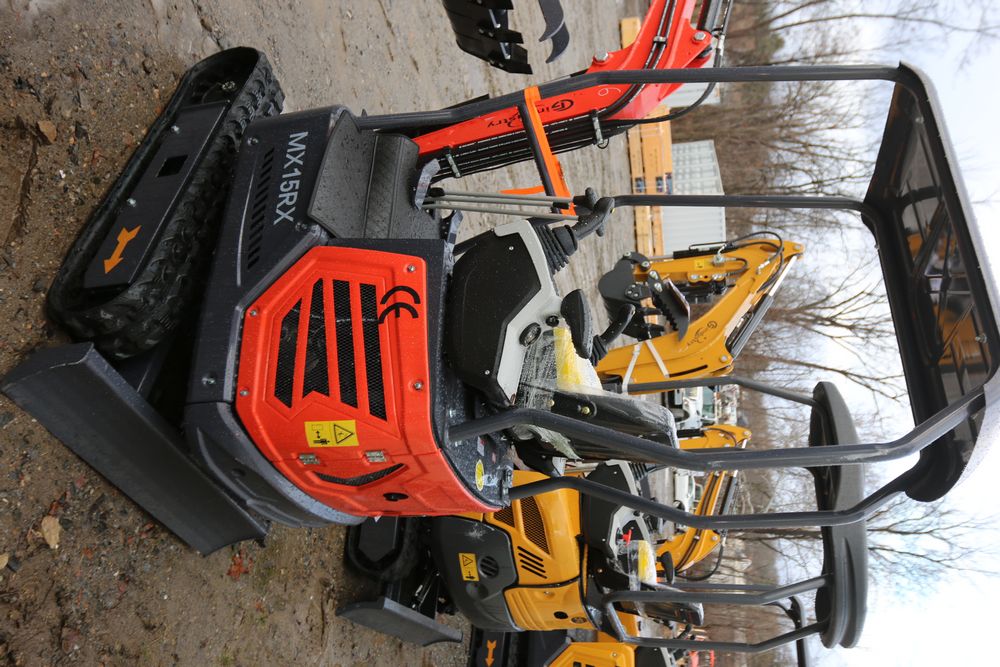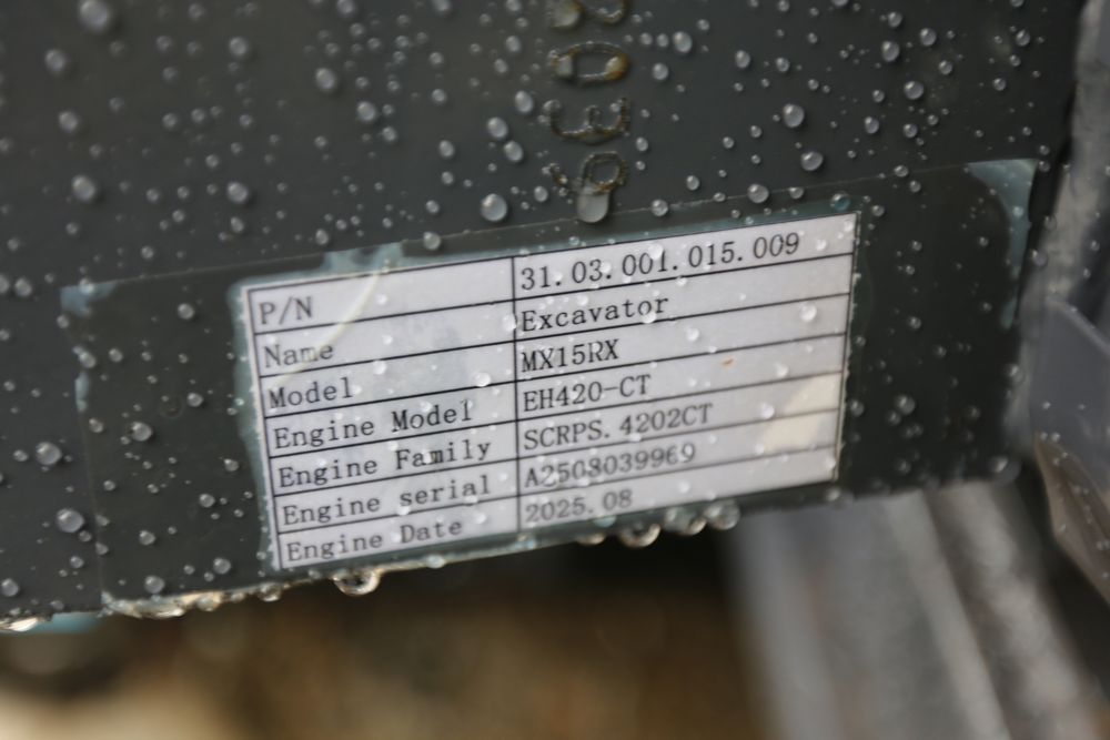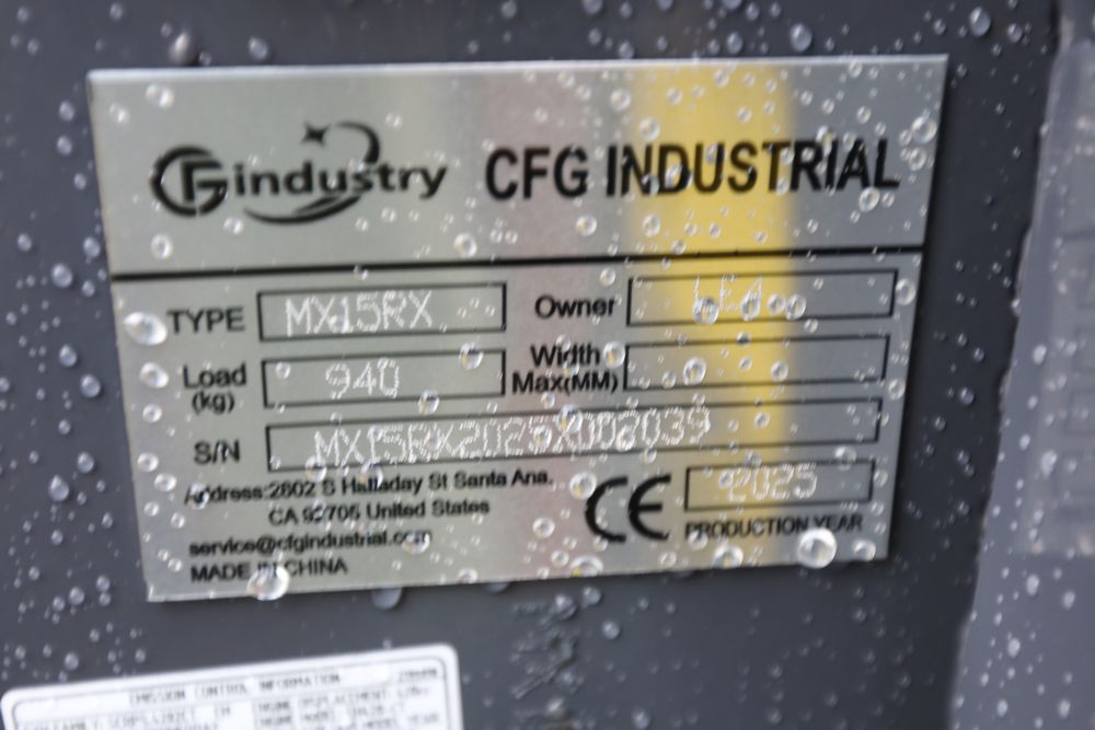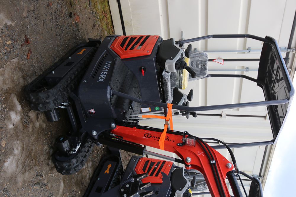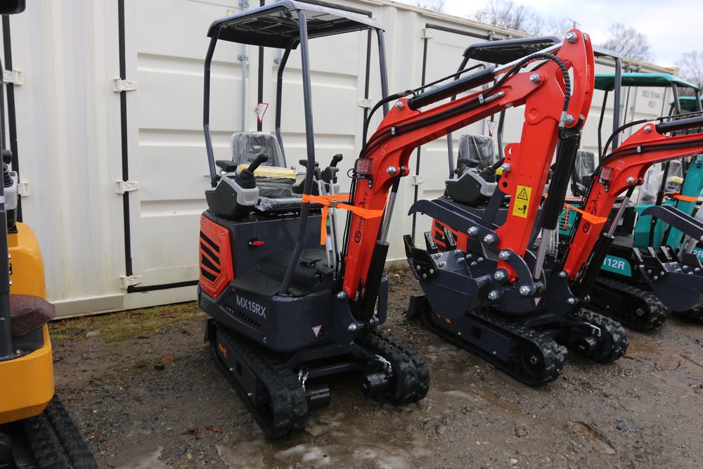 New 2025 CFG Industrial MX15RX Mini Excavator with a 420CC gas engine, dozer blade, bucket, pilot control’s, and digital gauges. Hours reading less than 1 hour.