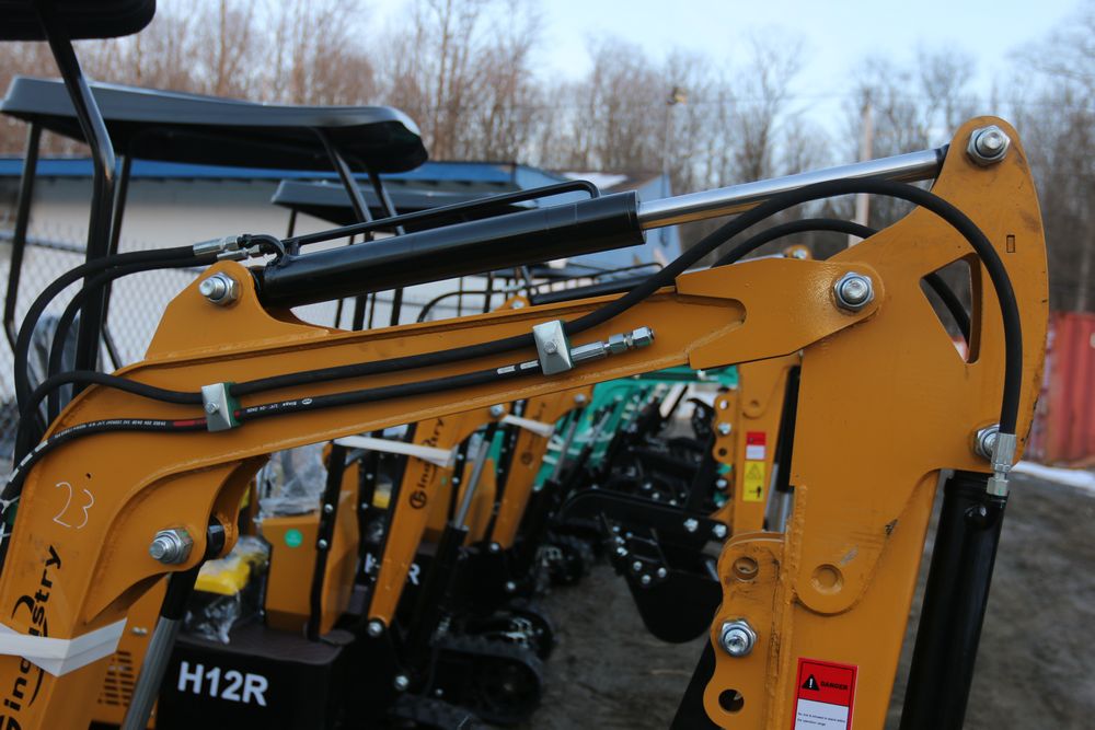 New 2025 CFG Industrial gas powered mini Excavator model H12R with 420cc gasoline engine with EPA, bucket, 4' long tracks, 36.5" wide base, 6" wide tracks, canopy, hydraulic boom & bucket controls, dozer blade. Hours reading less than 1 hour.