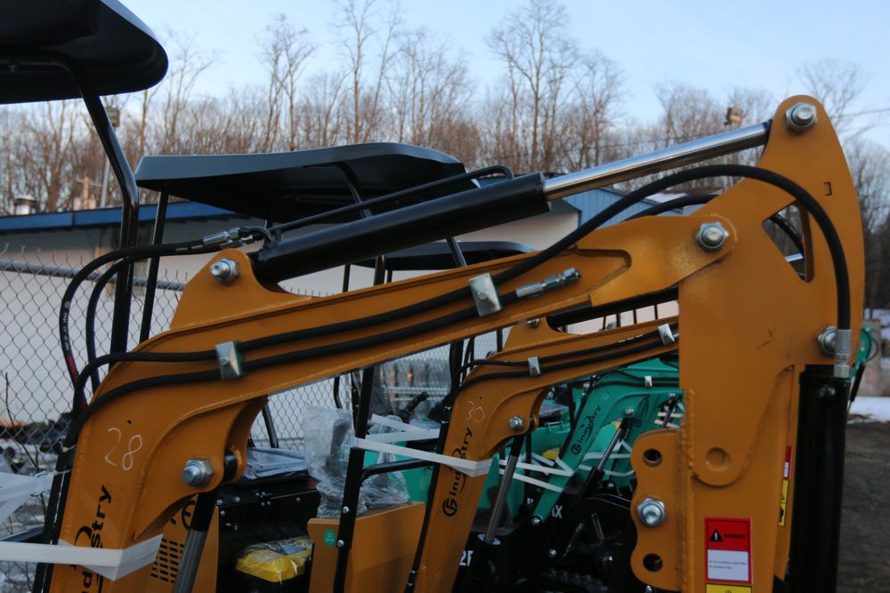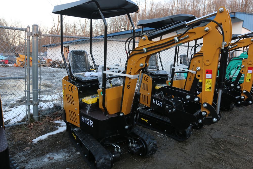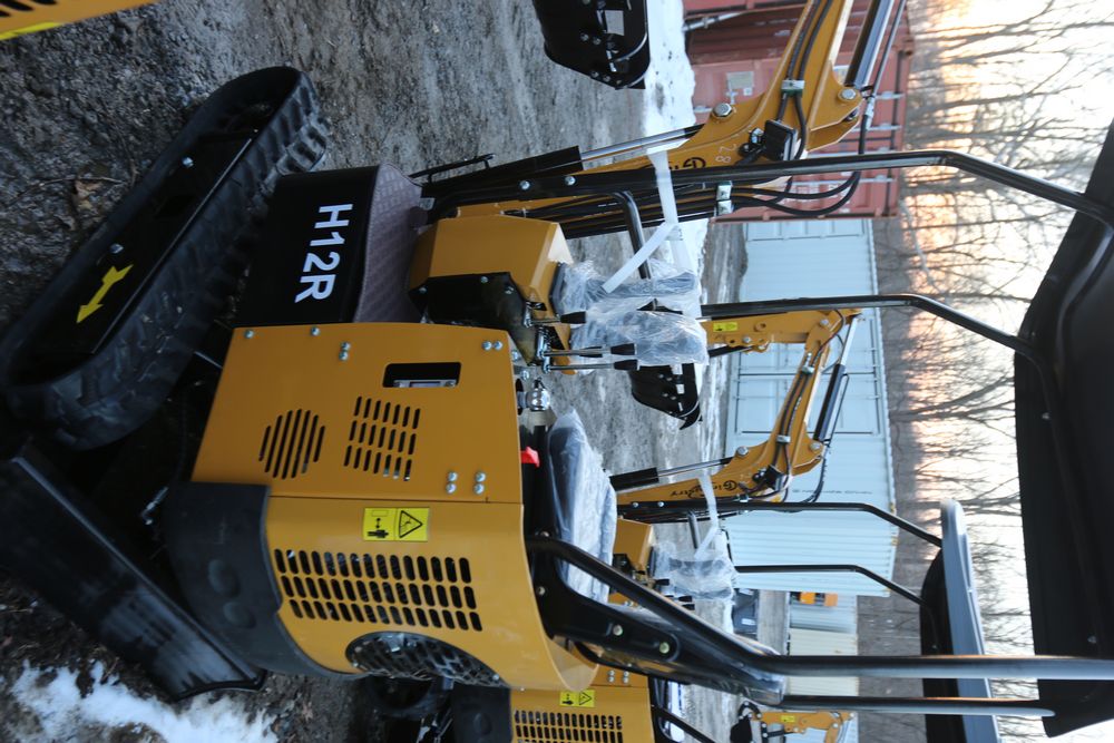 New 2025 CFG Industrial gas powered mini Excavator model H12R with 420cc gasoline engine with EPA, bucket, 4' long tracks, 36.5" wide base, 6" wide tracks, canopy, hydraulic boom & bucket controls, dozer blade. Hours reading less than 1 hour.