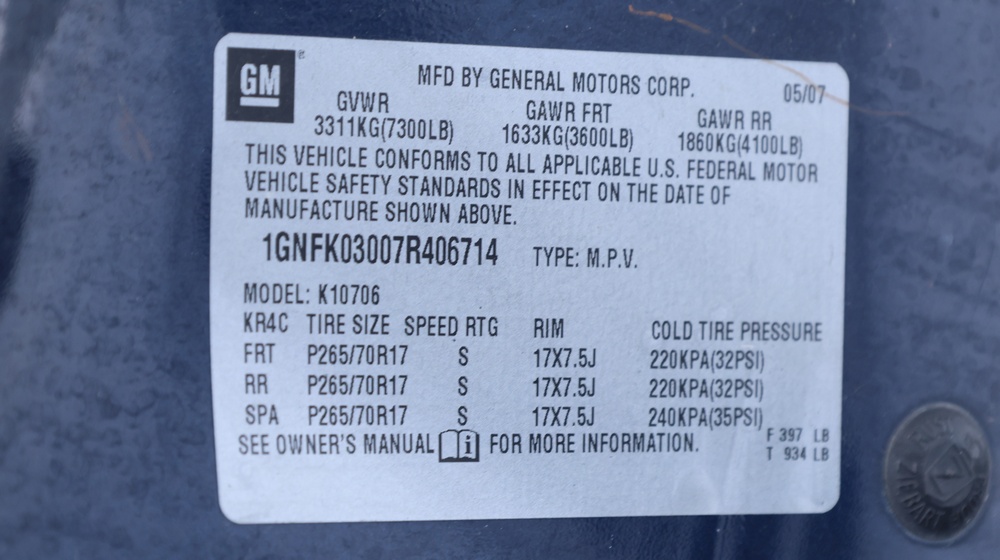 2007 Chevrolet Tahoe with a 5.3L V8 OHV 16V FFV engine. VIN: 1GNFK03007R406714. Odometer reading: 152169. Seller reports: Ran when removed from service, sitting for a while, current operating condition unknown, may have mechanical issues. Title & key available.