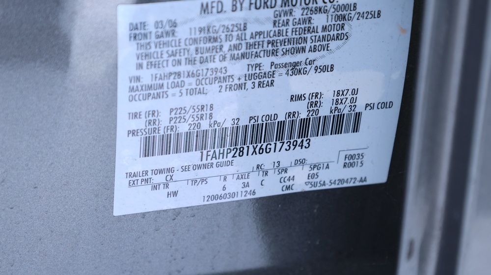 2006 Ford Five Hundred with a 3.0L V6 DOHC 24V engine. VIN: 1FAHP281X6G173943. Odometer reading: 83870. Seller reports: Ran when removed from service, sitting for a while, current operating condition unknown, may have mechanical issues. Title & key available.