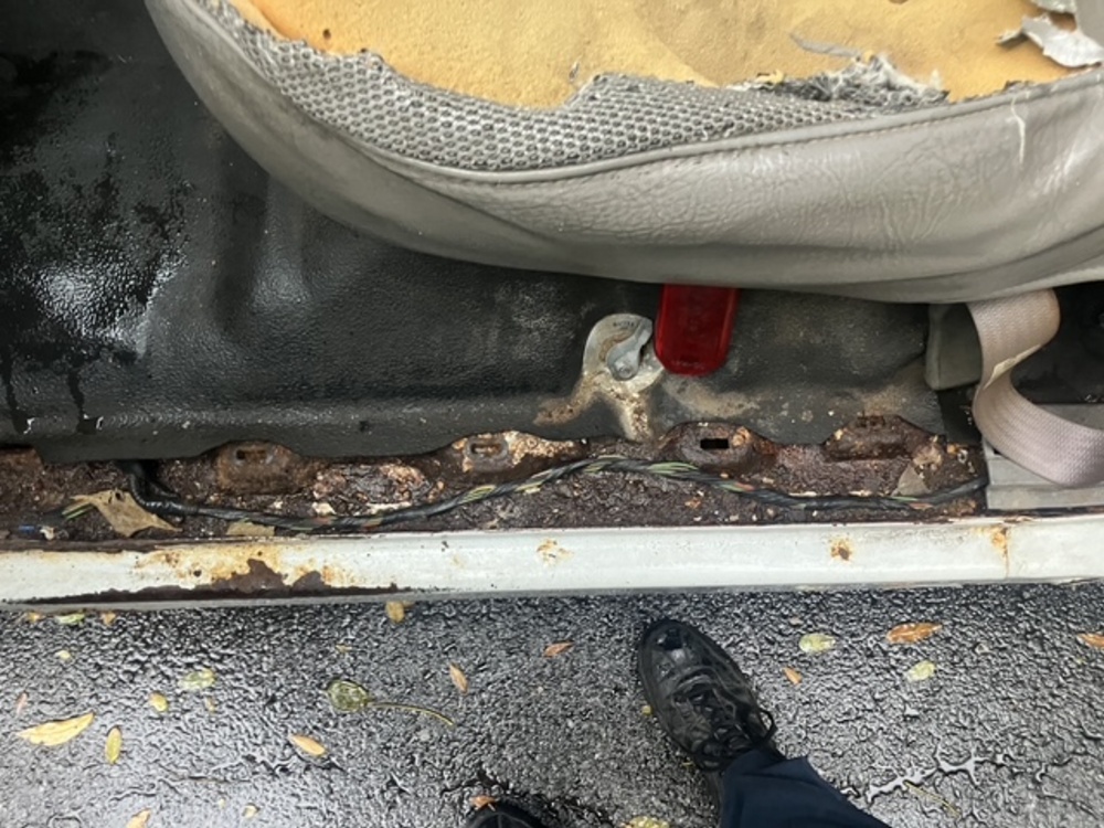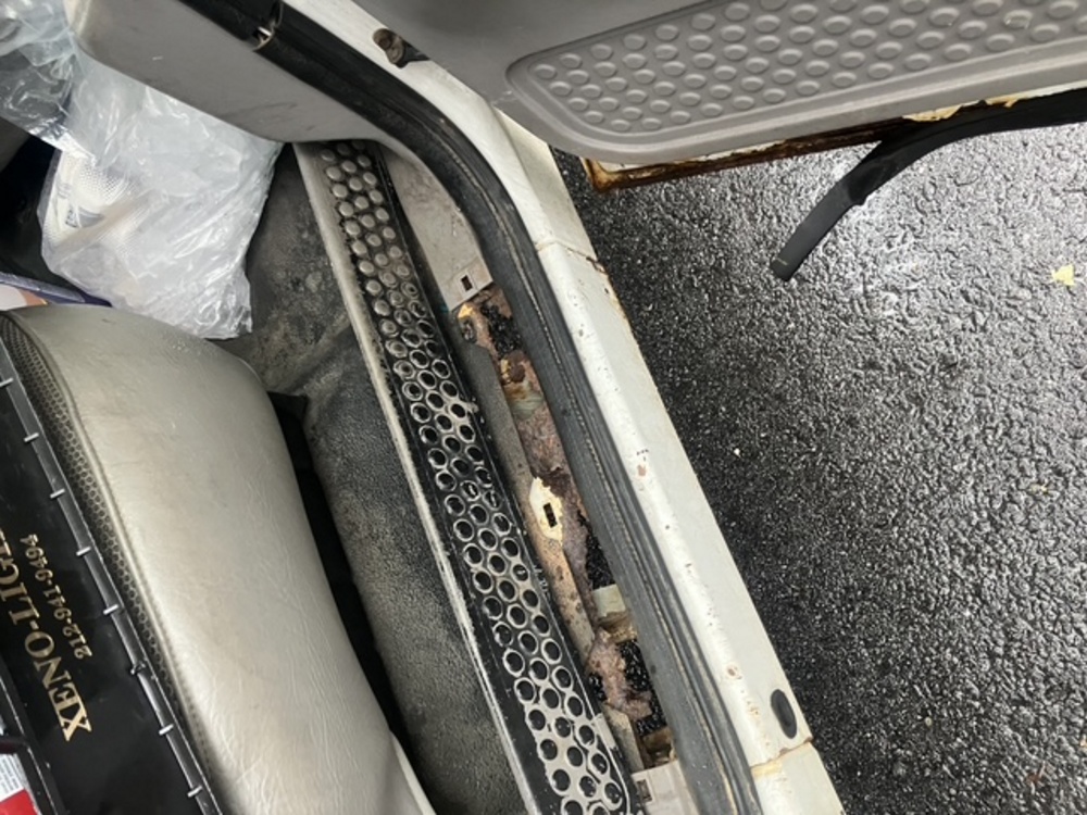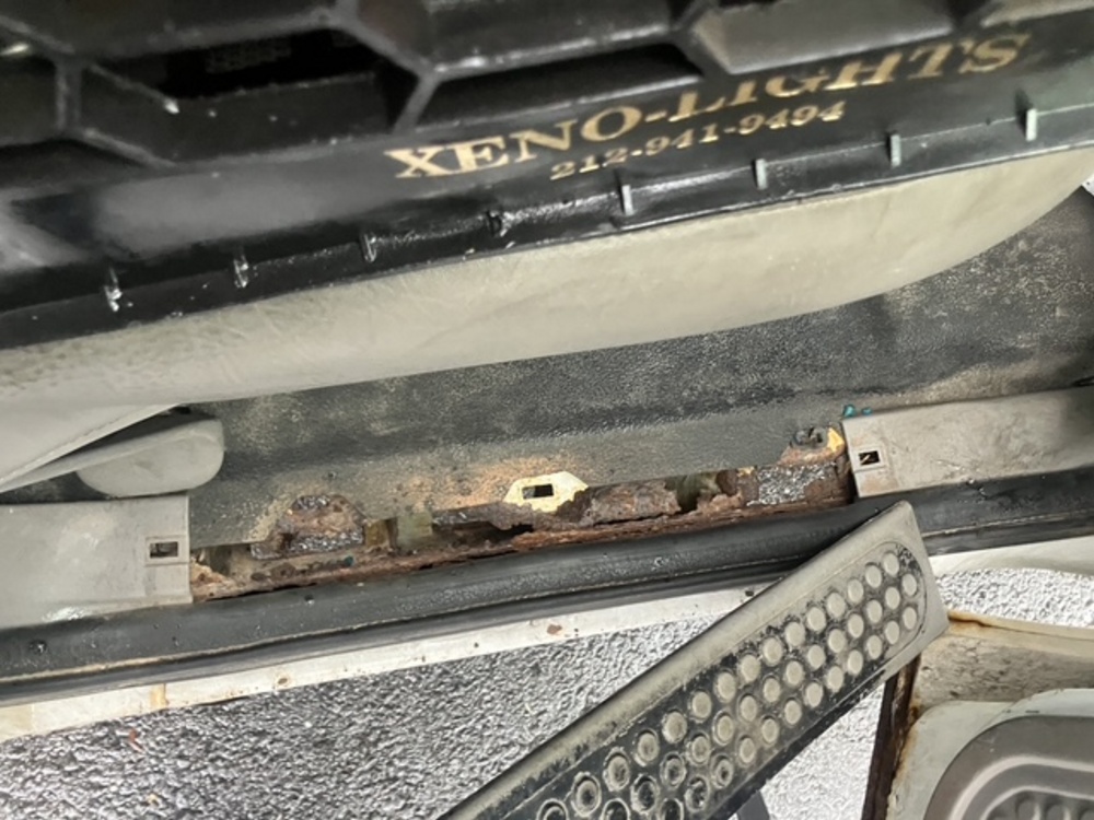 2001 Ford F-550 Super Duty flatbed stake bed crew cab truck with a International 7.3L V8 OHV 16V turbo diesel engine, automatic six speed transmission. VIN: 1FDAW56F11EC34840. Odometer reading: 84440. Seller reports: Runs and drives, liftgate (Tommy), steel cage and stakes, has electrical issue-lighting, clean title, rust through floors, steering feels pretty tight, will need starting fluid to fire up during cold weather, it is a 7.3 diesel one of the best engines out there, lift gate works as it should, heat works, no AC. See Carfax report.