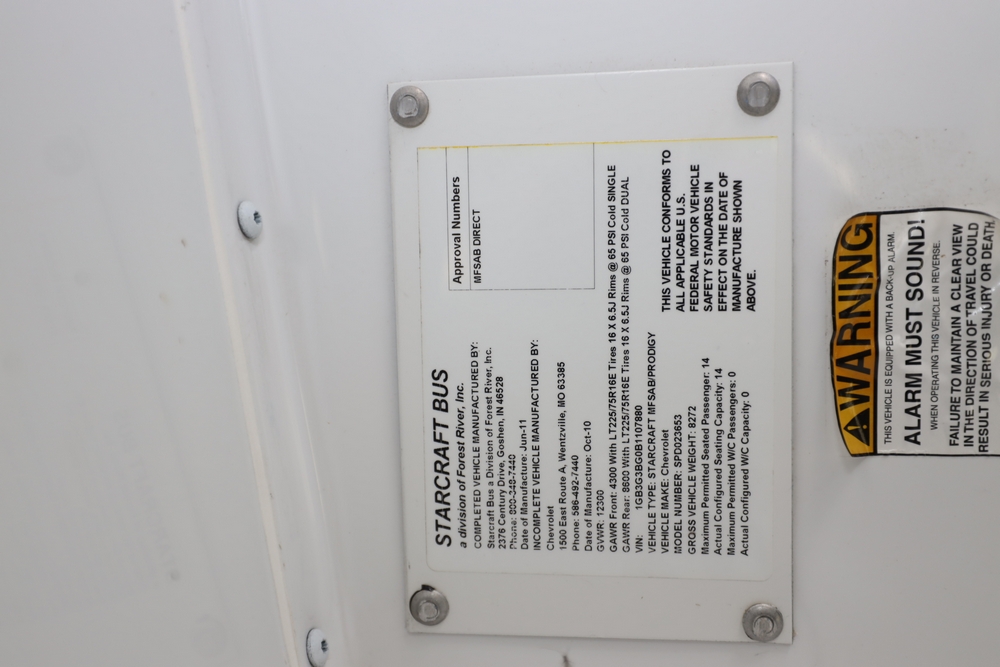 2011 Chevrolet Express 3500 Bus, Mfg. by Starcraft. VIN: 1GB3G3BG0B1107880. Engine: 6.0L V8 SPFI Flex Fuel. Odometer reading: 70261. Runs, drives, operates. Title & key available.