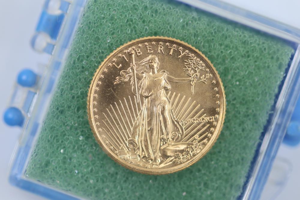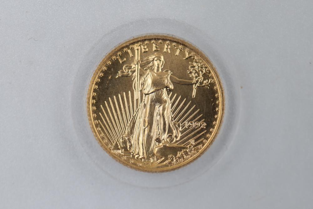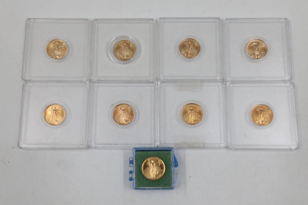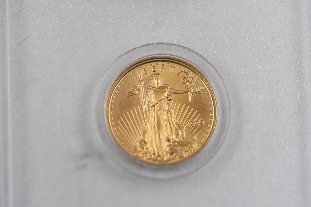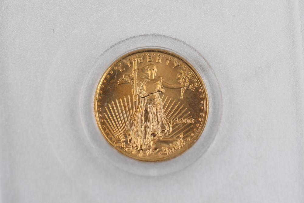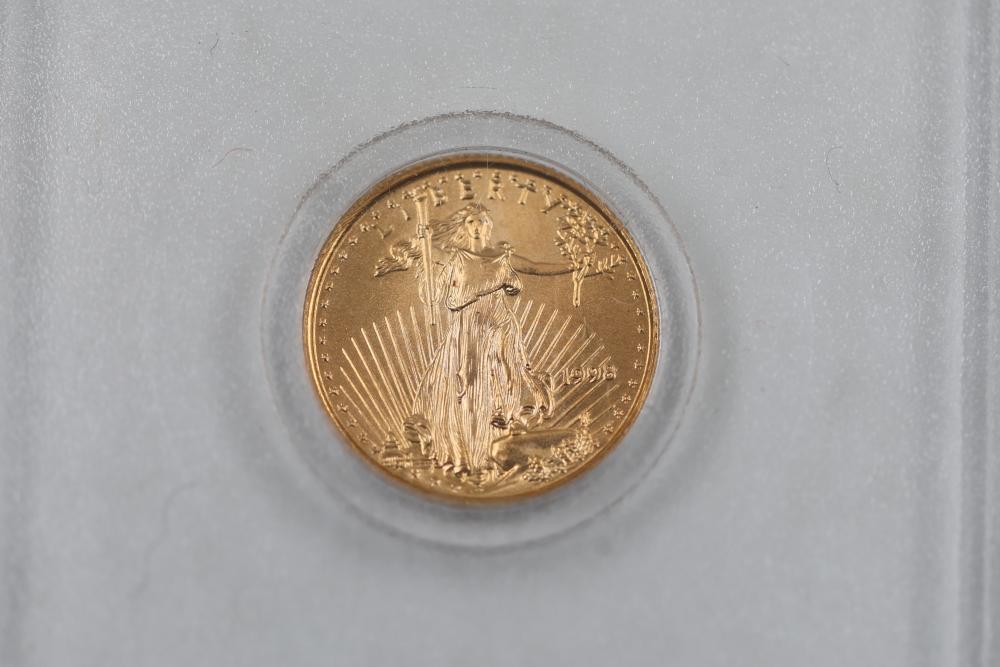 1/10 Oz 24k $5 Gold U.S. Coins and Nickel Coins with Certificates (1992-2000, MCMXCI, Indian Head 1904). Includes a variety of coins, including gold coins in protective cases, and an Indian Head penny (1904). Tested with JSP solution.