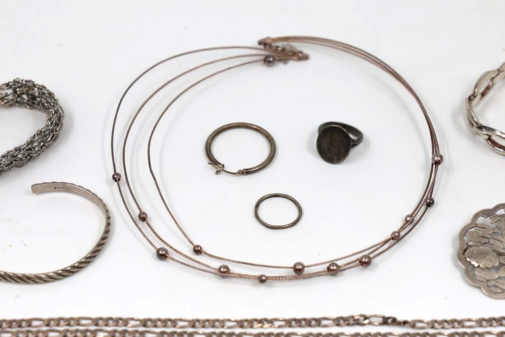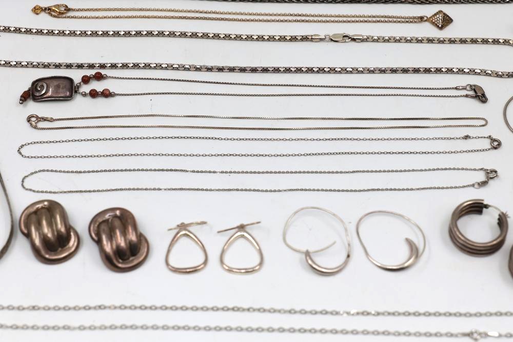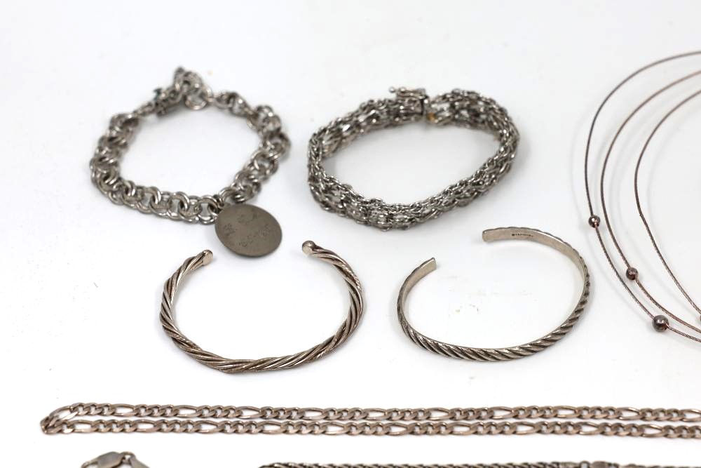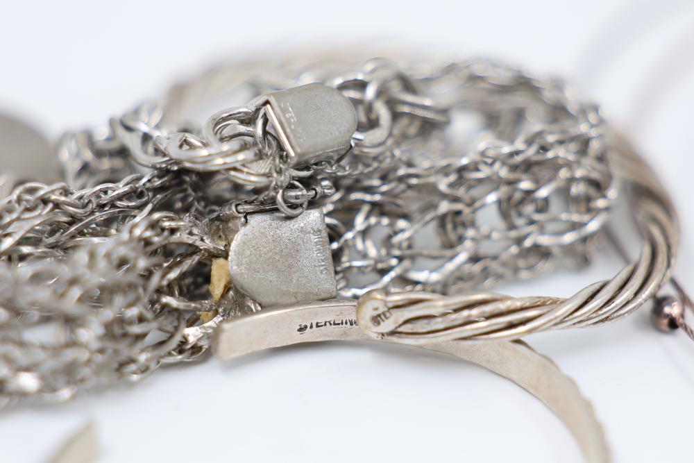 Sterling and .925 Stamped Silver Jewelry featuring an array of jewelry including necklaces, bracelets, earrings, rings, brooches, and other accessories. Total weight being 250 grams.