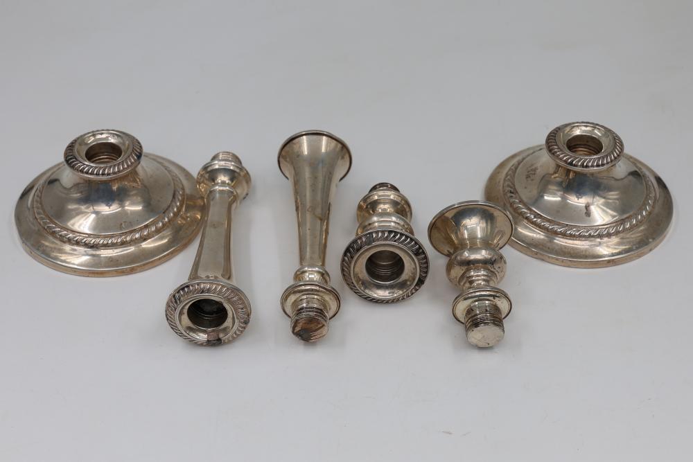 Gorham Sterling candlesticks with cement weighted bases. All pieces are interchangeable. Stamped "Gorham Sterling Cement Filled Reinforced With Rod 771". Total weight being 1544 grams.