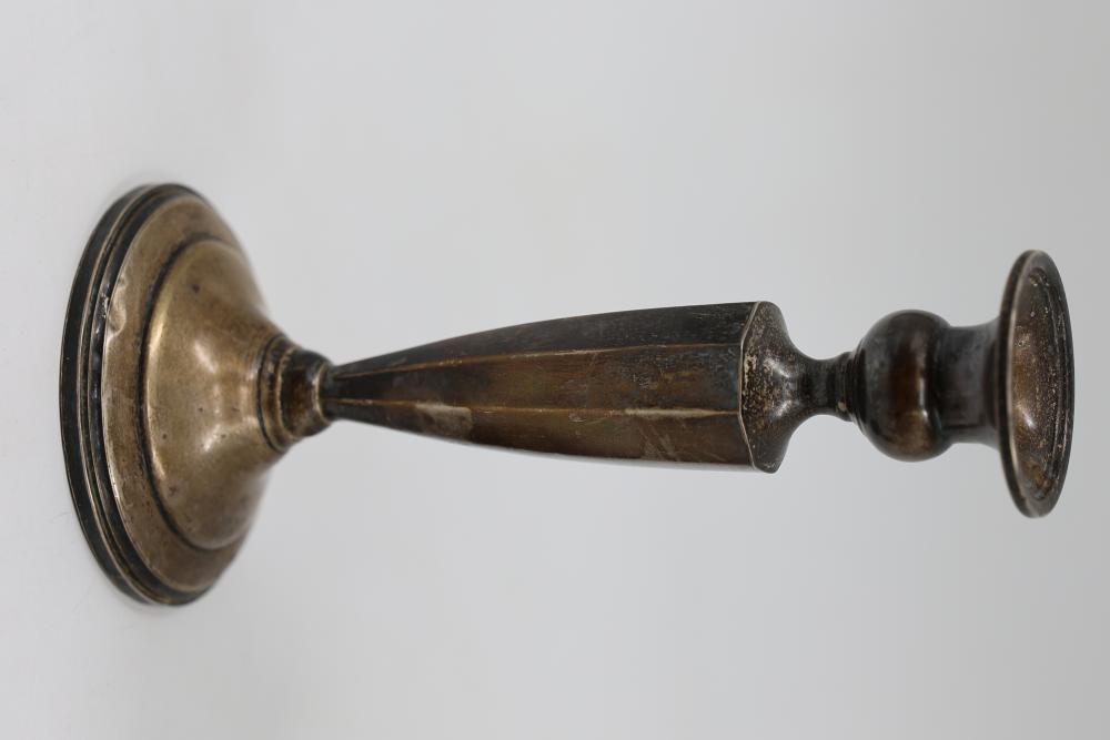 Three Sterling Silver Candlesticks in Assorted Styles. Includes two matching candlesticks with an octagonal faceted design and one smaller candlestick with a smooth finish. Each is constructed of sterling silver with reinforced bases as Stamped. Total weight being 946 grams.