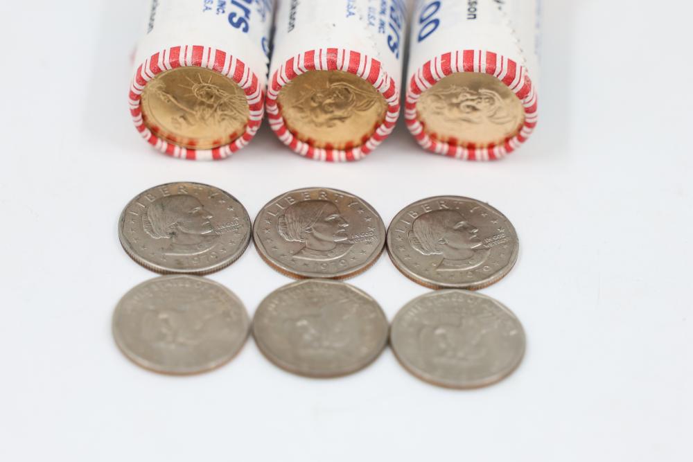 Four Rolls of Andrew Jackson Presidential $1 Dollar Coins and Susan B. Anthony $1 Dollar Coins.
