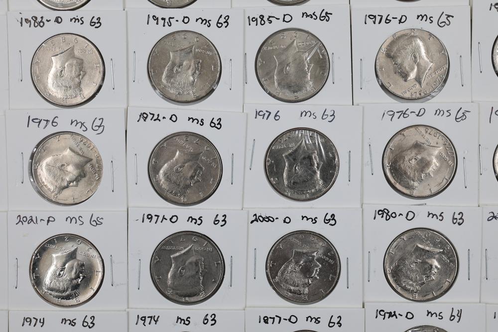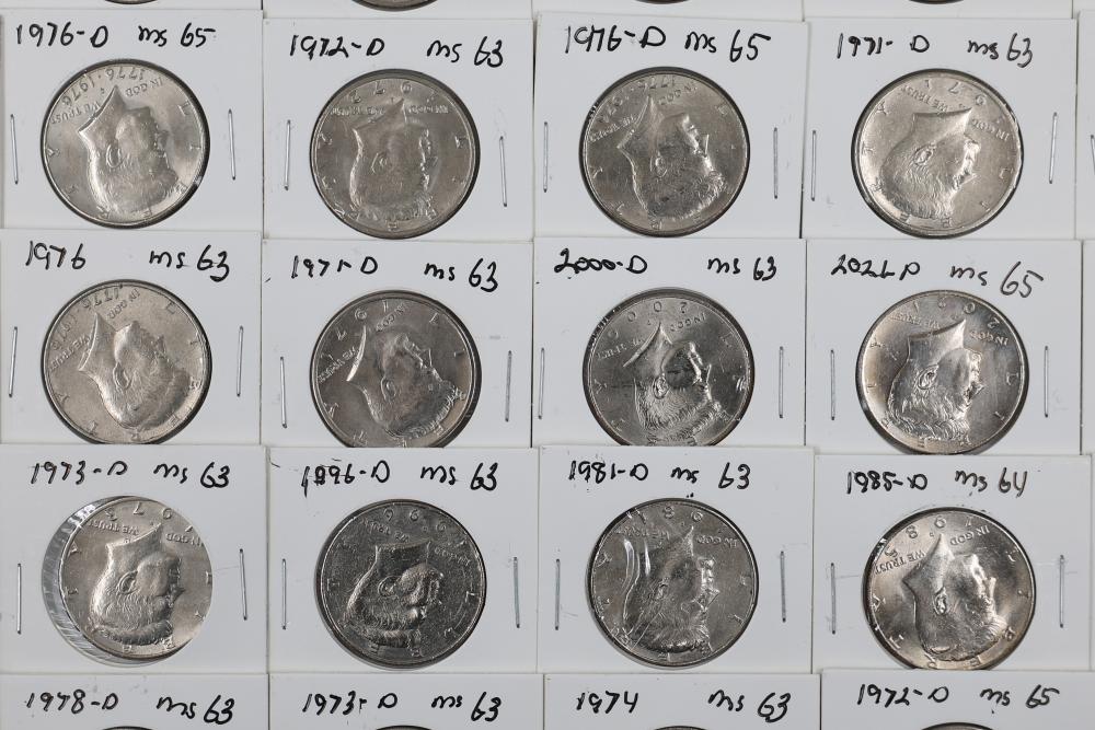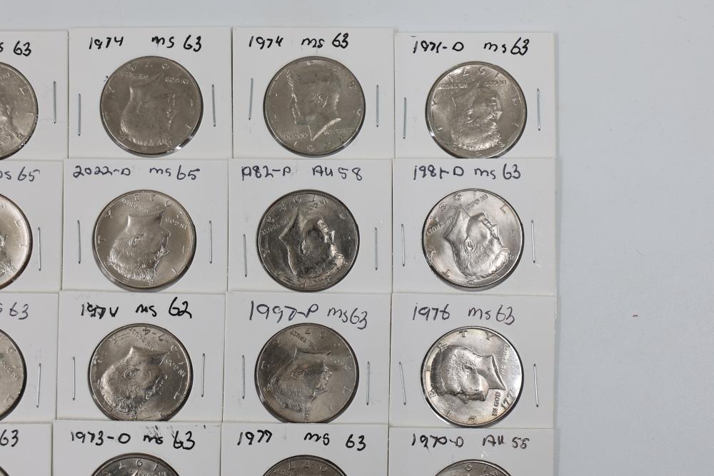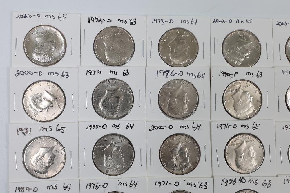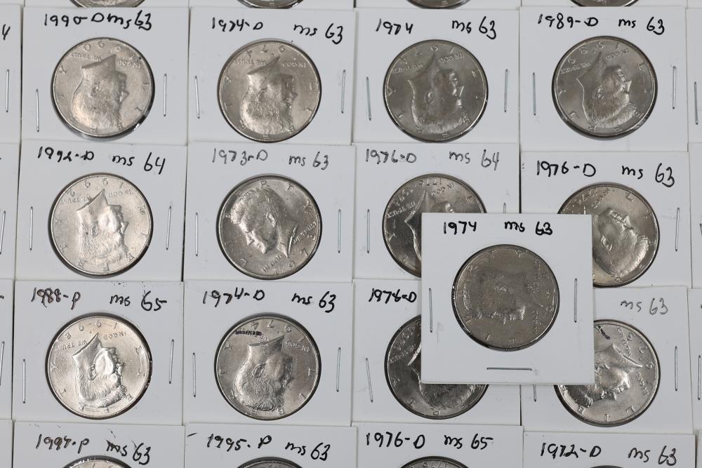 U.S. 50c Kennedy Half Dollars with years including 1971, 1972, 1973, 1974, 1976, 1980, 1988, 1990, 1993, 1995, 1997, 2000, and 2022. Conditions are variable. 201 coins in total.