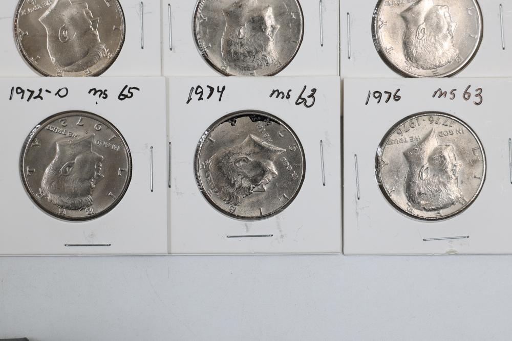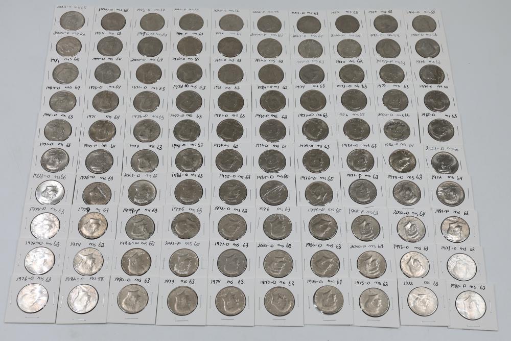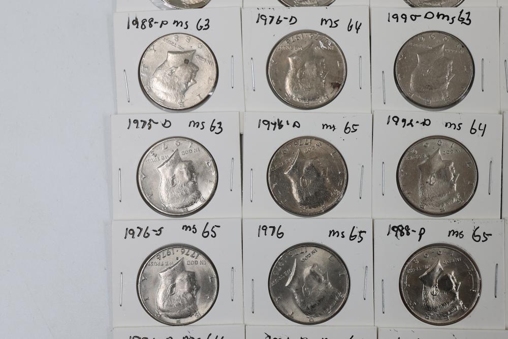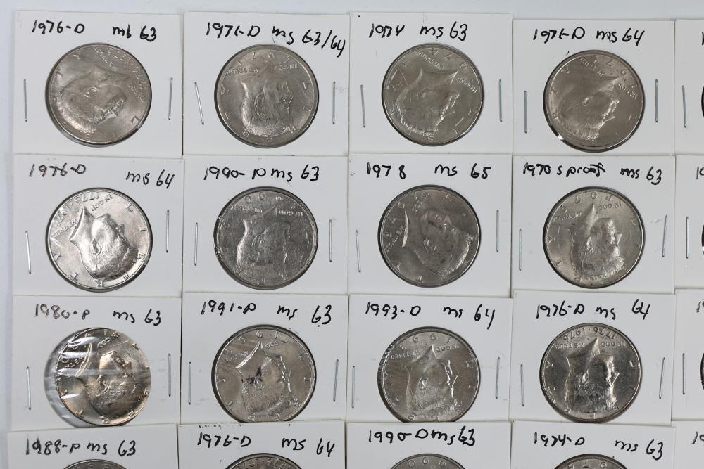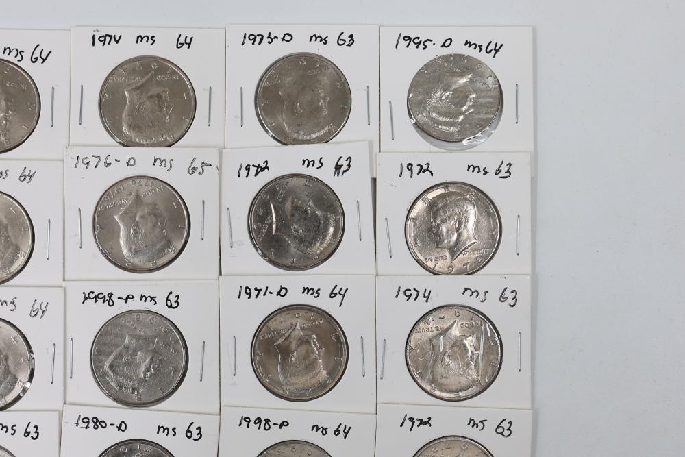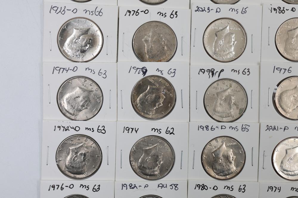 U.S. 50c Kennedy Half Dollars with years including 1971, 1972, 1973, 1974, 1976, 1980, 1988, 1990, 1993, 1995, 1997, 2000, and 2022. Conditions are variable. 201 coins in total.
