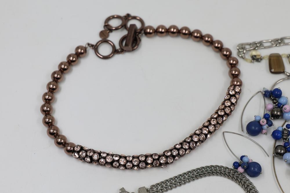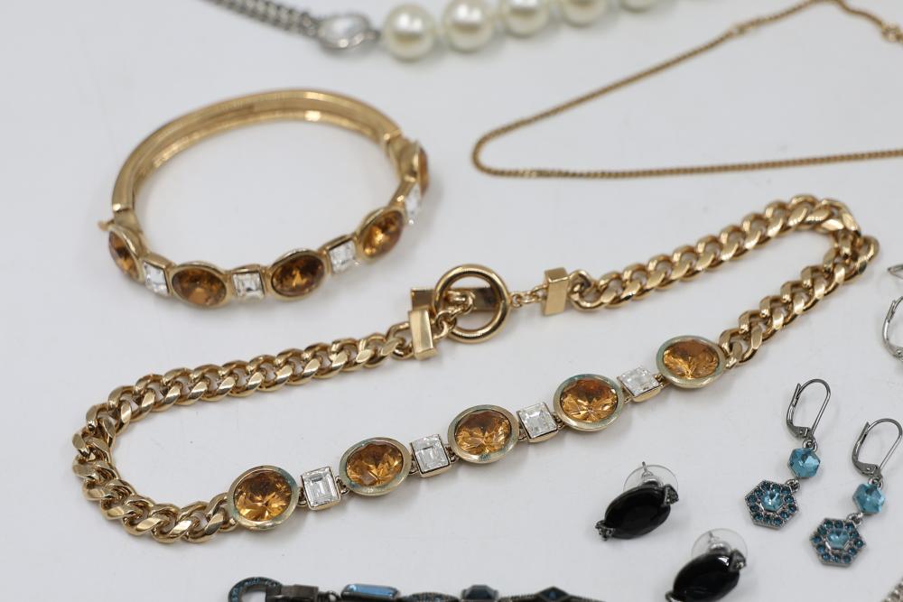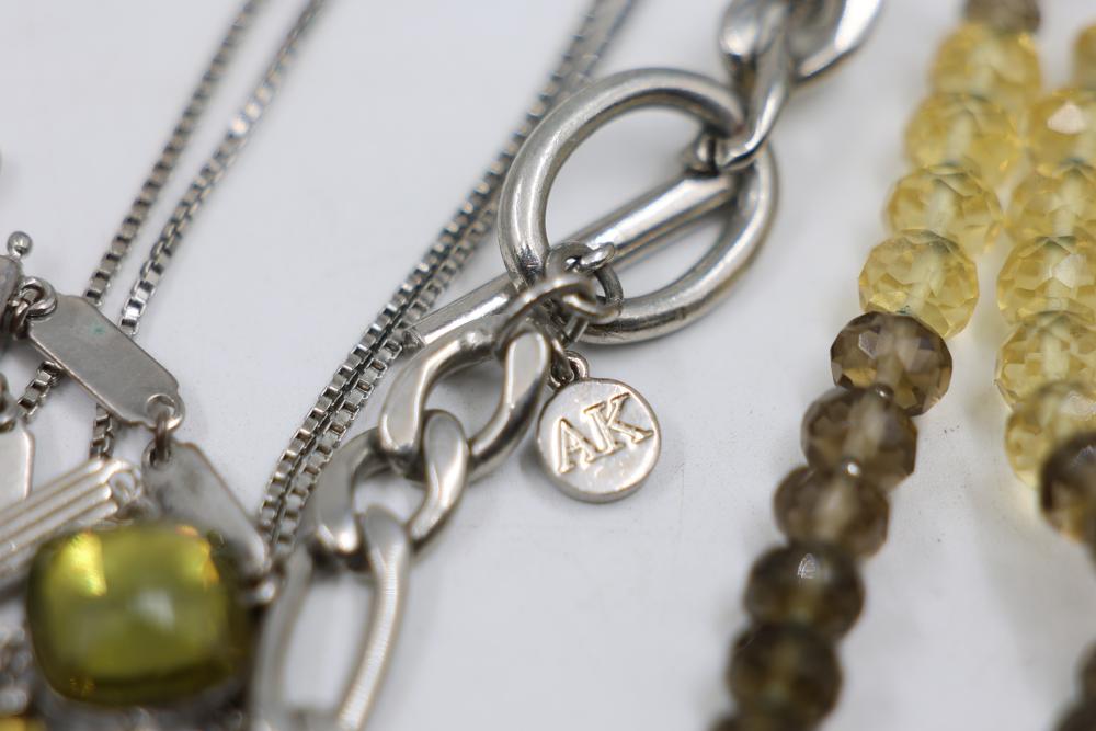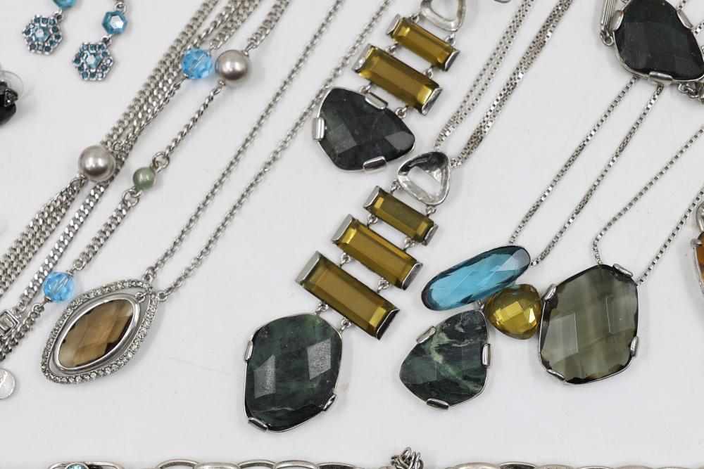 Costume Jewelry including necklaces, bracelets, and earrings in a variety of designs and materials. Items feature chains, beads, gemstone accents, and varied metal finishes, with many items Stamped Givenchy and AK.