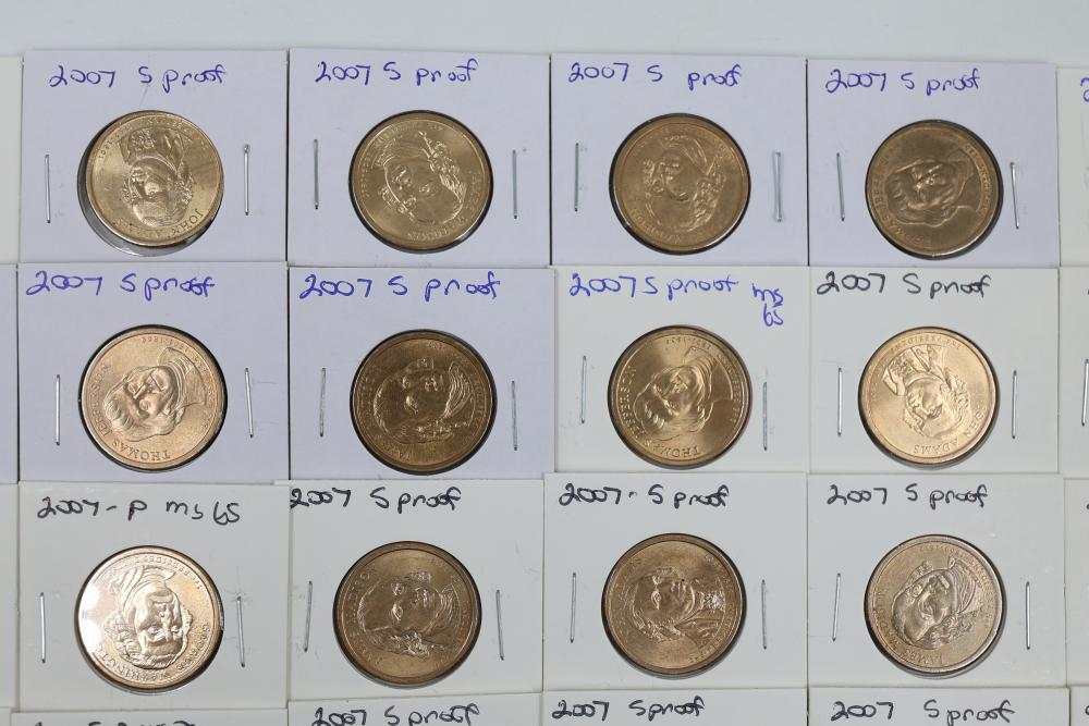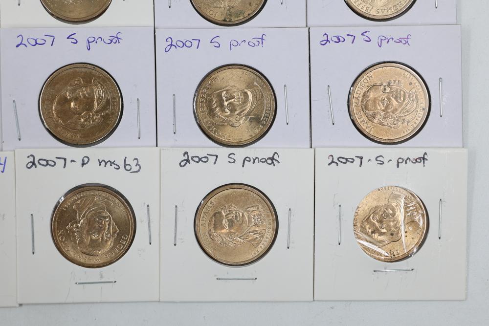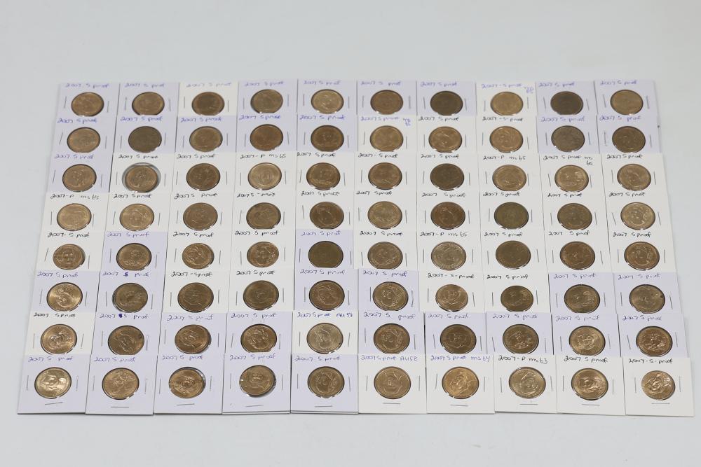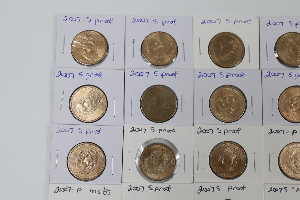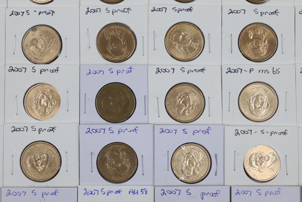 U.S. $1 Commemorative Presidential Coins from the year 2007 in variable conditions. 80 coins in total.