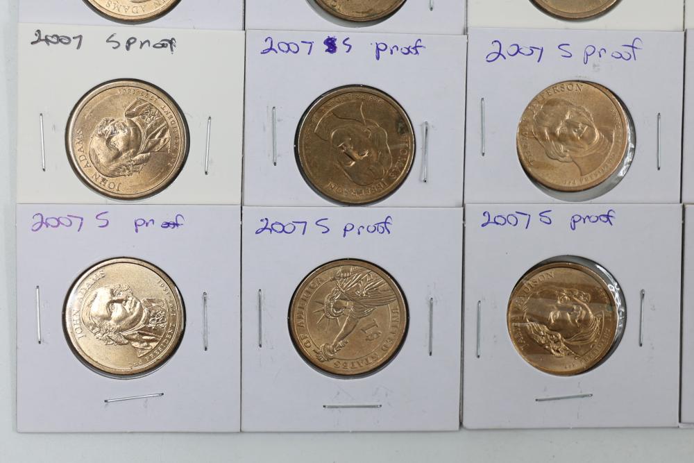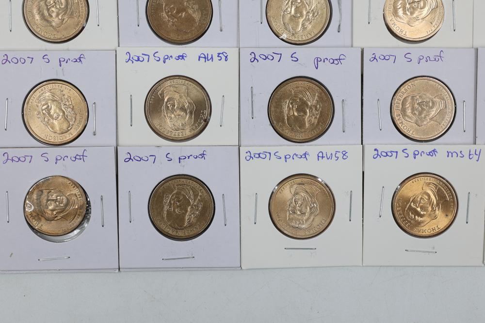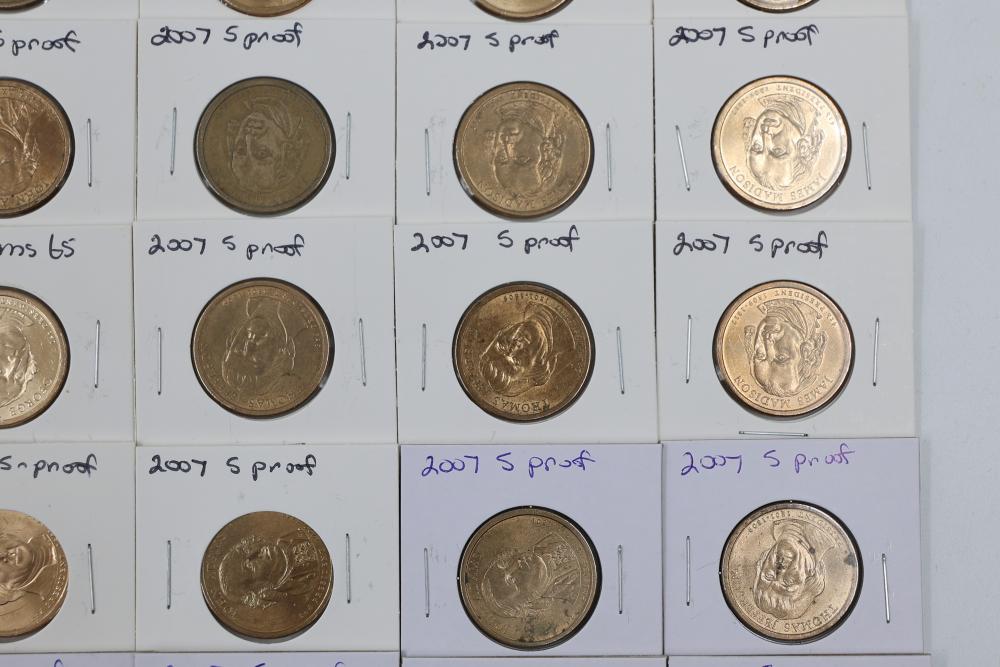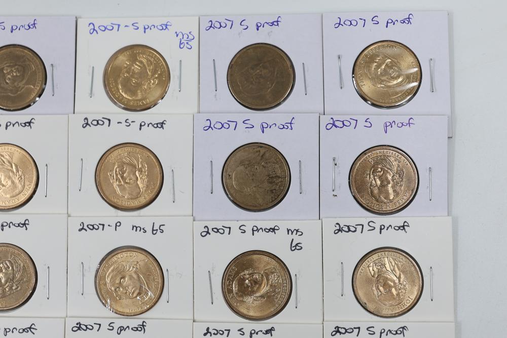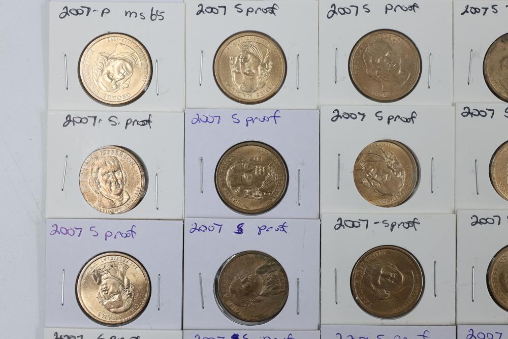 U.S. $1 Commemorative Presidential Coins from the year 2007 in variable conditions. 80 coins in total.