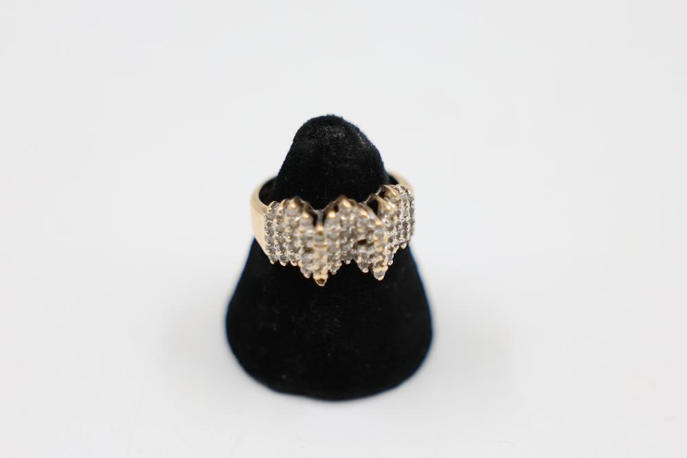 14K stamped gold ring with many small diamonds. Total weight being 6 grams.