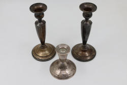 Sterling Decorative Candlesticks stamped Sterling 50 on bottom. Total weight being 342 grams.