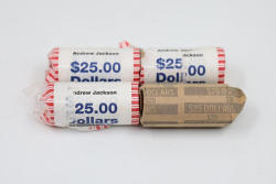 Four Rolls of Andrew Jackson Presidential $1 Dollar Coins and Susan B. Anthony $1 Dollar Coins.