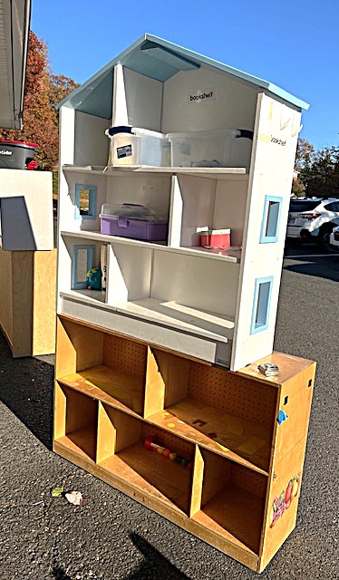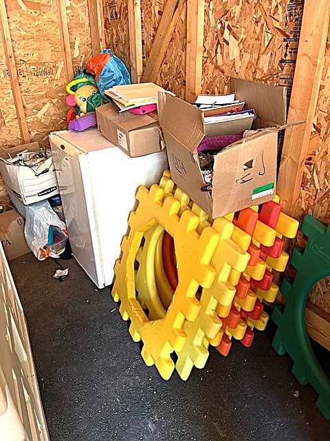 Items include fridge; outdoor playscape (apart); boxes with office items, kitchen items, and toys; Sterilite cabinet 35" x 25" with cots. Also, boxes with daycare items; sensory Little Tikes plastic kitchen 44" x 42"; stroller; Sterilite cabinet. The cabinet contains CD player and play clothes. Also, twelve cots 50" x 23"; boxes of play toys and books; six cots 50" x 23"; outdoor playscape (apart); thirteen chairs; new three-sided easel; assorted plastic chairs; table – legs are off, 60" x 30"; table – legs are off, 72" x 30"; eight-seat kidney toddler feeding table – legs are off, 77.5" x 44". Plastic seat inserts not shown; natural wood cabinet with toys and other items 48" x 19"; three-seat toddler feeding table – legs are off, 48" x 30"; octagonal table 48" with legs underneath; high chair with removable tray; new in box, Colorations three-way acrylic panel easel 23" x 39" x 47"; natural wood cabinet for books 48" x 22.5"; storage container with bag of soccer balls and holiday items; baby changing table 32.5" x 21" with plastic storage container containing first aid items and other supplies; fine motor skills activity center; pop-up gazebo 10 x 10 feet; three outdoor water interactive tables; Little Tikes interactive kitchen 44" x 13"; Hewlett Packard desktop screen; bicycle helmets; plastic table 30.5" with wooden playhouse on top; two new Cosco Simple Fold high chairs; playhouse 47.5" x 41", by Guidecraft; new three-sided easel; assorted fine motor skill toys; slide; chairs; cabinet 20" x 15"; multiple Joni Craft cabinets in multiple sizes. The functionality of electric/electronic items are unknown. Authenticity is not checked nor guaranteed on any & all items. Pickup is by appointment only to gain initial access & clean out must be completed by Sunday, March 22 at 5PM. PICKUP NOTE: The high bidder must clean/take all & leave nothing in the garages or on the property by Sunday, March 22 at 8PM. The garages must be broom swept clean. Any dumpsters on the property are for use by the tenants only, not the public. Anything left in the garages after Sunday, March 8 at 5PM will be deemed abandoned & all cleanup costs will be the responsibility of the buyer with a minimum disposal fee of $300. Due to security reasons the pickup location will only be given to the winning bidders. There is no physical inspection available for this auction. Items are located in Manchester, CT.