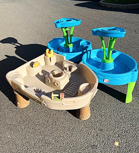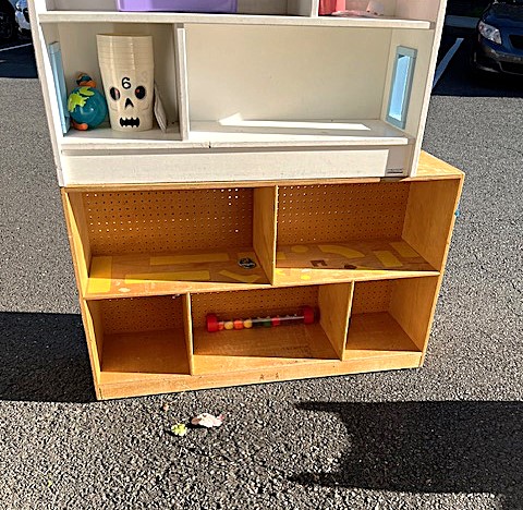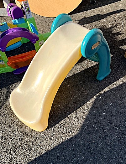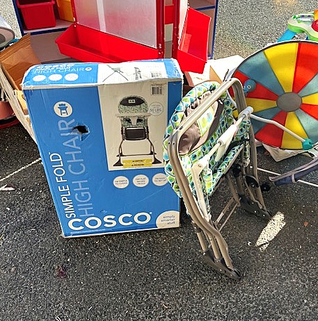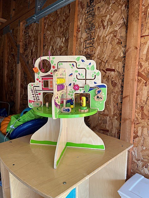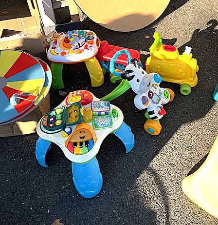 Contents of two 19' x 12' garages being sold by the garage's owner. Items are being liquidated from a closed daycare. Contents include: Joni cabinets, foldable cribs with posture boards; wooden rolling storage cart; Little Tikes tricycles; Bye Bye Buggy six-seater stroller; Joni Craft wooden sensory play kitchen; Graco Ingenuity high chairs; round exersaucers; wooden chairs; Graco baby rockers; Hewlett Packard desktop screen; sleeping cots; eight-seat kidney toddler feeding table; Little Tikes plastic kitchen; fine motor skills activity center; outside water interactive tables; three-sided easel- fine motor skill toys; soccer balls; bicycle helmets; Cosco Simple Fold high chairs; plus much more. The functionality of electric/electronic items are unknown. Authenticity is not checked nor guaranteed on any & all items. Items are located in Manchester, CT.
