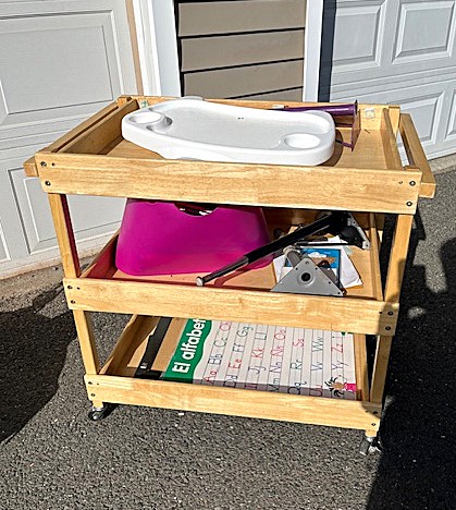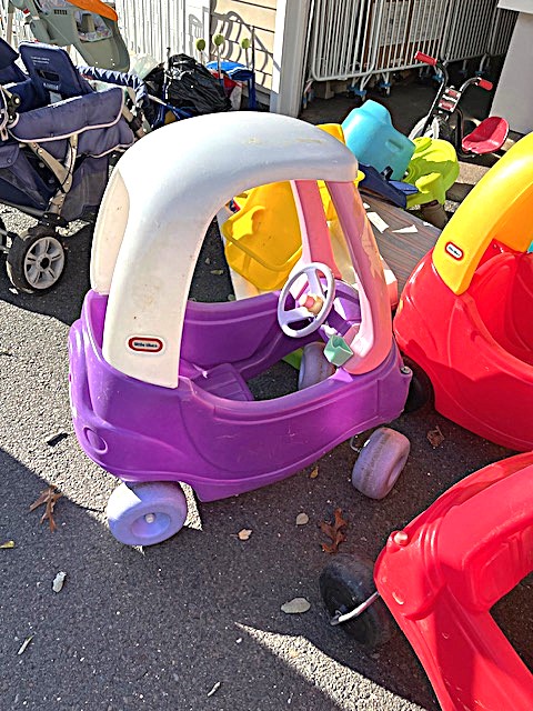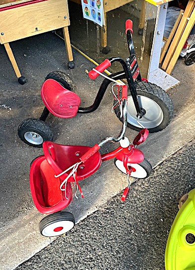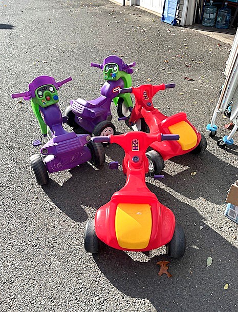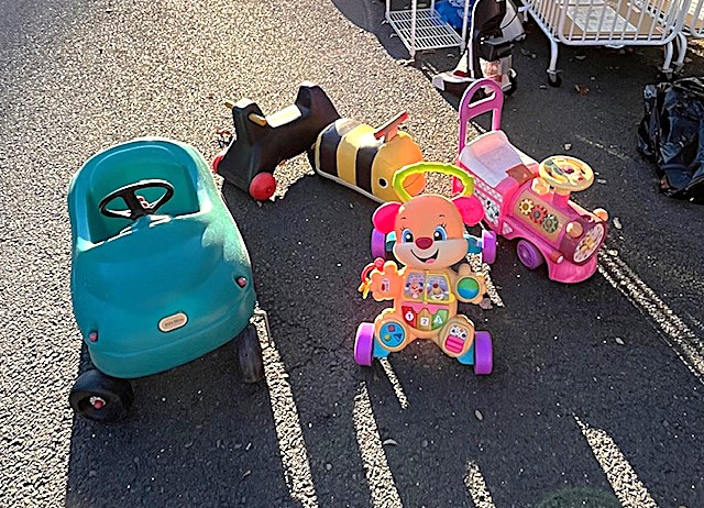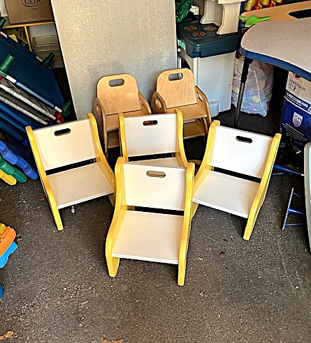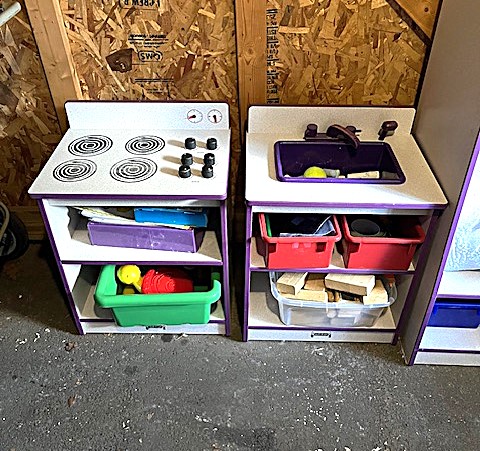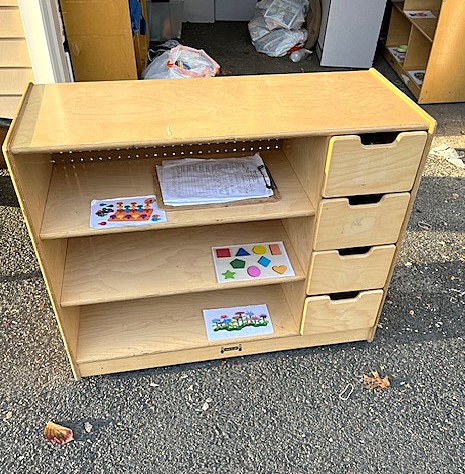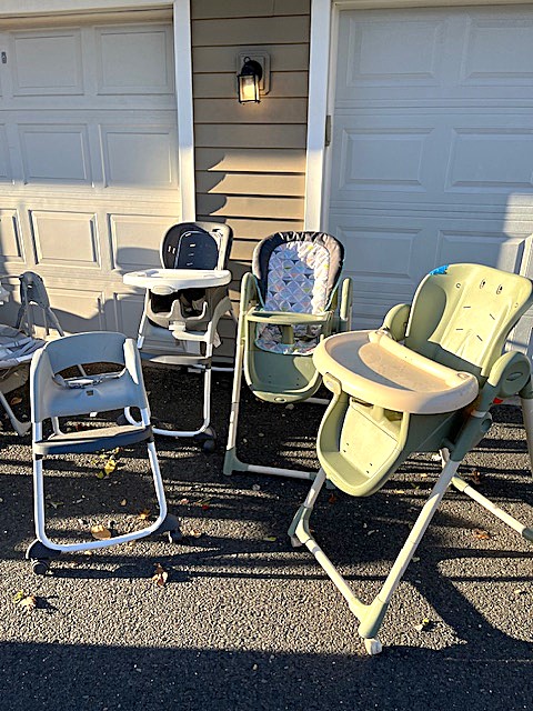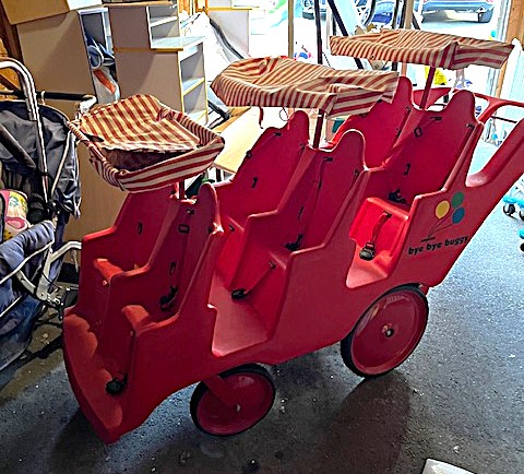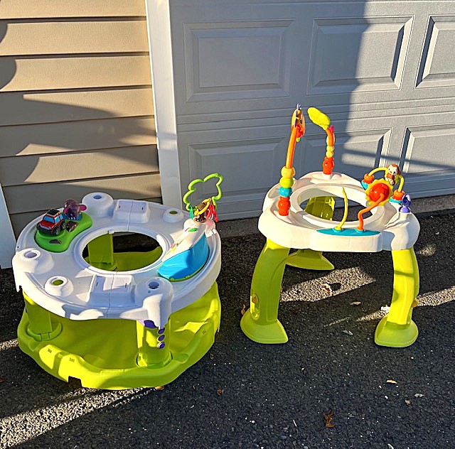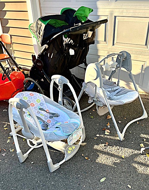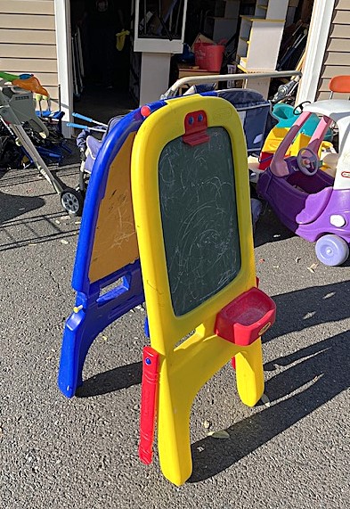 Contents of two 19' x 12' garages being sold by the garage's owner. Items are being liquidated from a closed daycare. Contents include: Joni cabinets, foldable cribs with posture boards; wooden rolling storage cart; Little Tikes tricycles; Bye Bye Buggy six-seater stroller; Joni Craft wooden sensory play kitchen; Graco Ingenuity high chairs; round exersaucers; wooden chairs; Graco baby rockers; Hewlett Packard desktop screen; sleeping cots; eight-seat kidney toddler feeding table; Little Tikes plastic kitchen; fine motor skills activity center; outside water interactive tables; three-sided easel- fine motor skill toys; soccer balls; bicycle helmets; Cosco Simple Fold high chairs; plus much more. The functionality of electric/electronic items are unknown. Authenticity is not checked nor guaranteed on any & all items. Items are located in Manchester, CT.