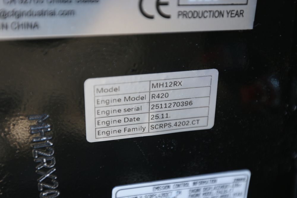 New 2026 CFG Industrial MH12RX mini excavator with bucket, thumb, gas engine. Hours reading less than 1 hour.