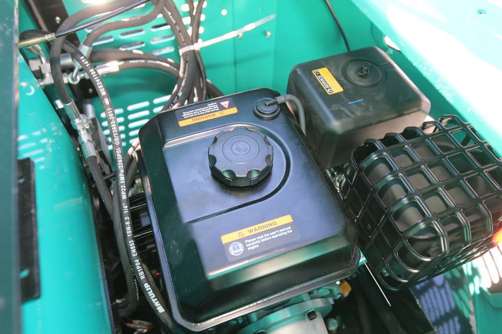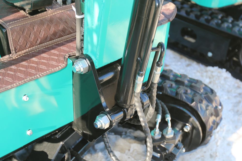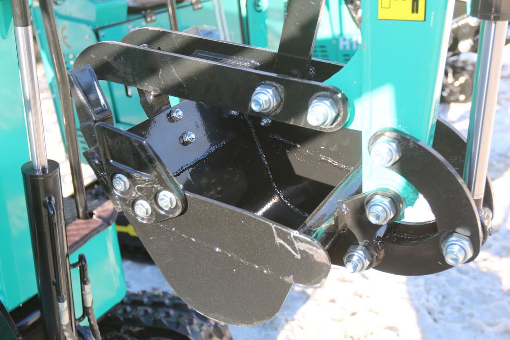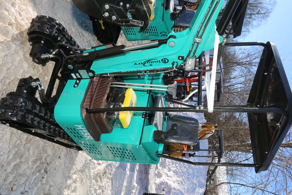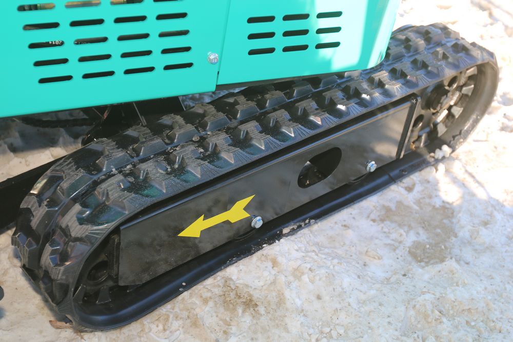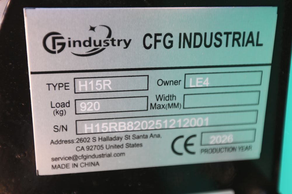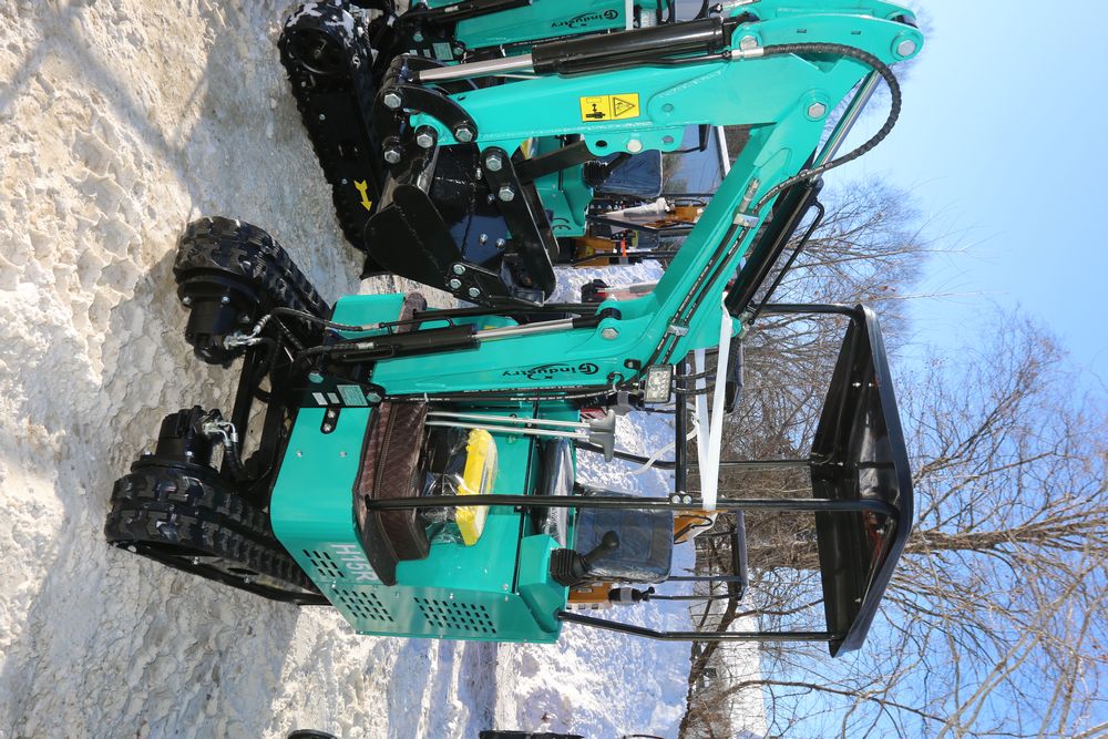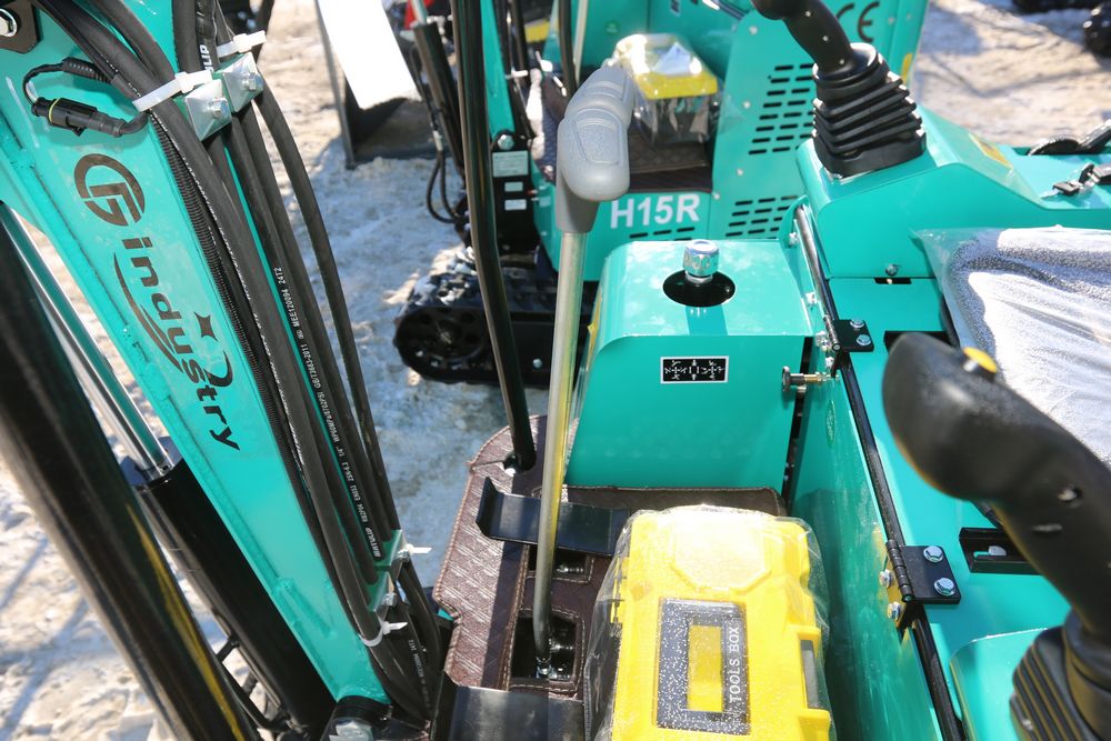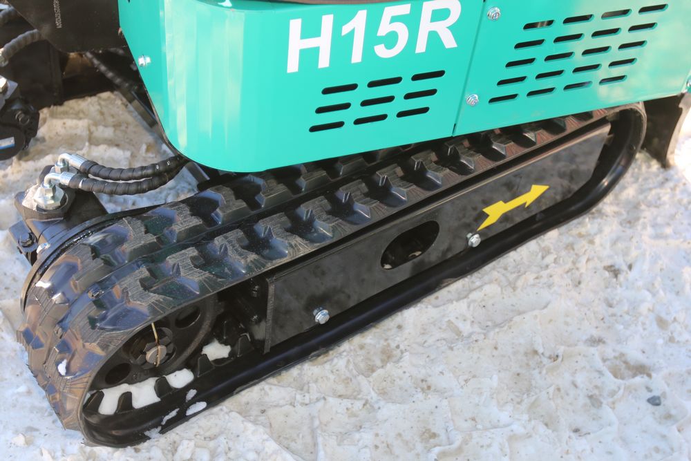 New 2026 CFG Industrial gas powered mini Excavator model H15R with 420cc gasoline engine, bucket, 4' long tracks, 38.5" wide base, 6" wide tracks, canopy, hydraulic boom & bucket controls, pilot system, thumb, dozer blade. Hours reading less than 1 hour.